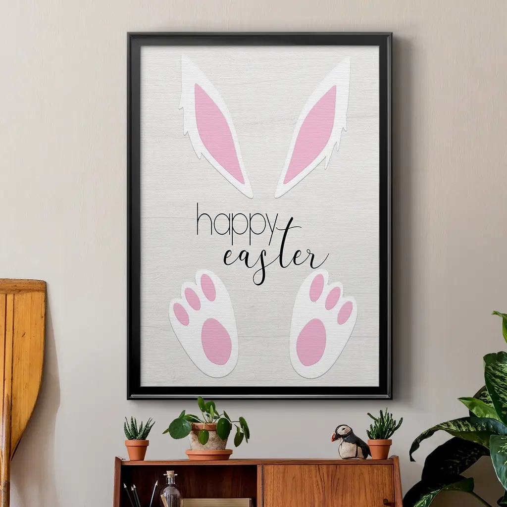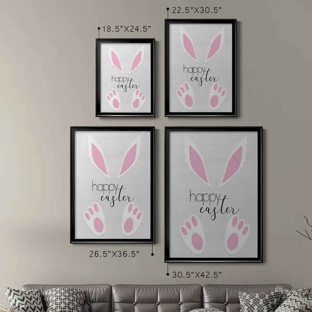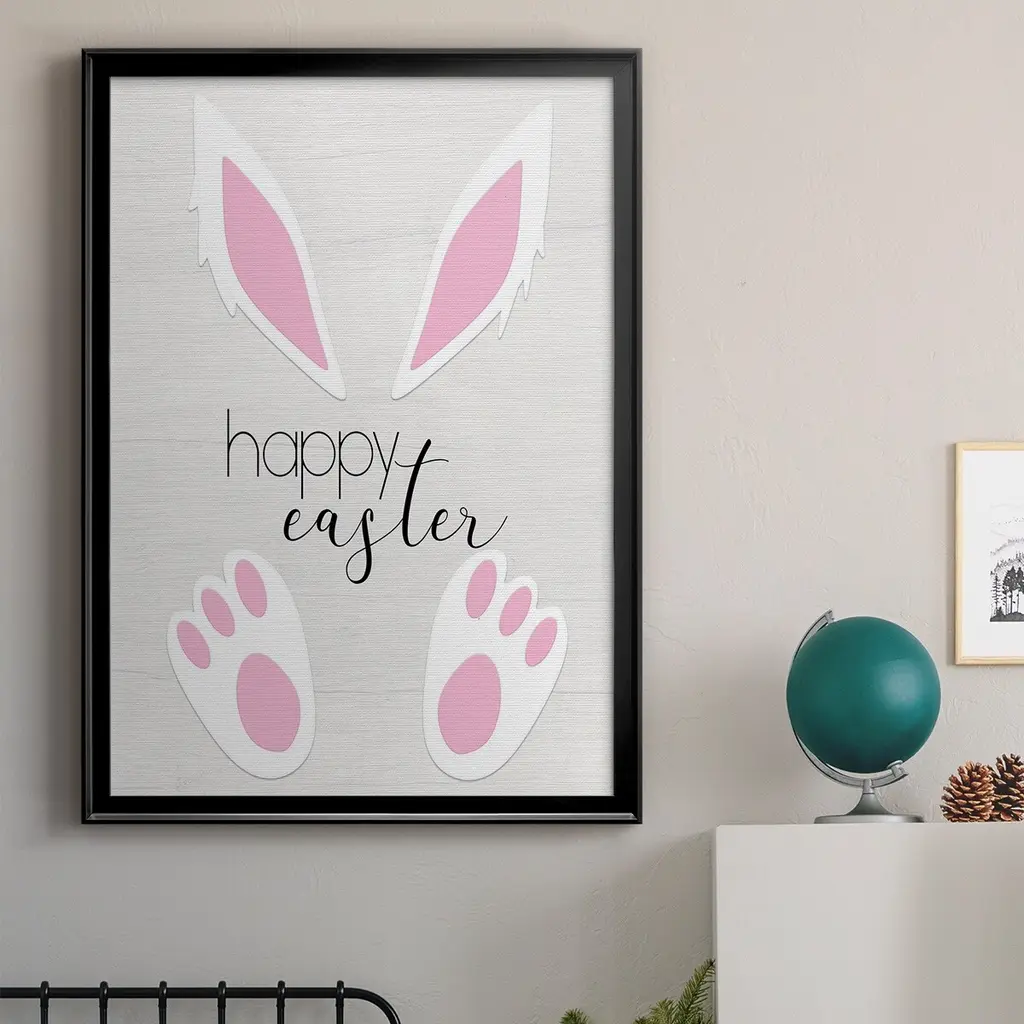 Happy Easter Premium Framed Print - Ready to Hang A Premium Framed Print created to last. Framed in distressed wood and available in an array of sizes and colors Featuring a beveled a solid wood stretcher bar, each piece comes ready to hand 4 SIZES AVAILABLE 30.5''X42.5'' - Overall Size 26.5'X36.5'' - Overall Size 22.5''x30.5'' - Overall Size 18.5''x24.5'' - Overall Size Each piece is made to order. Each piece comes with hanging hardware. Made in the USA Ready to Hang
