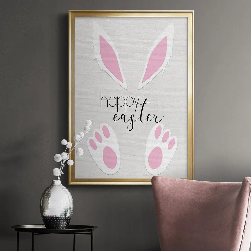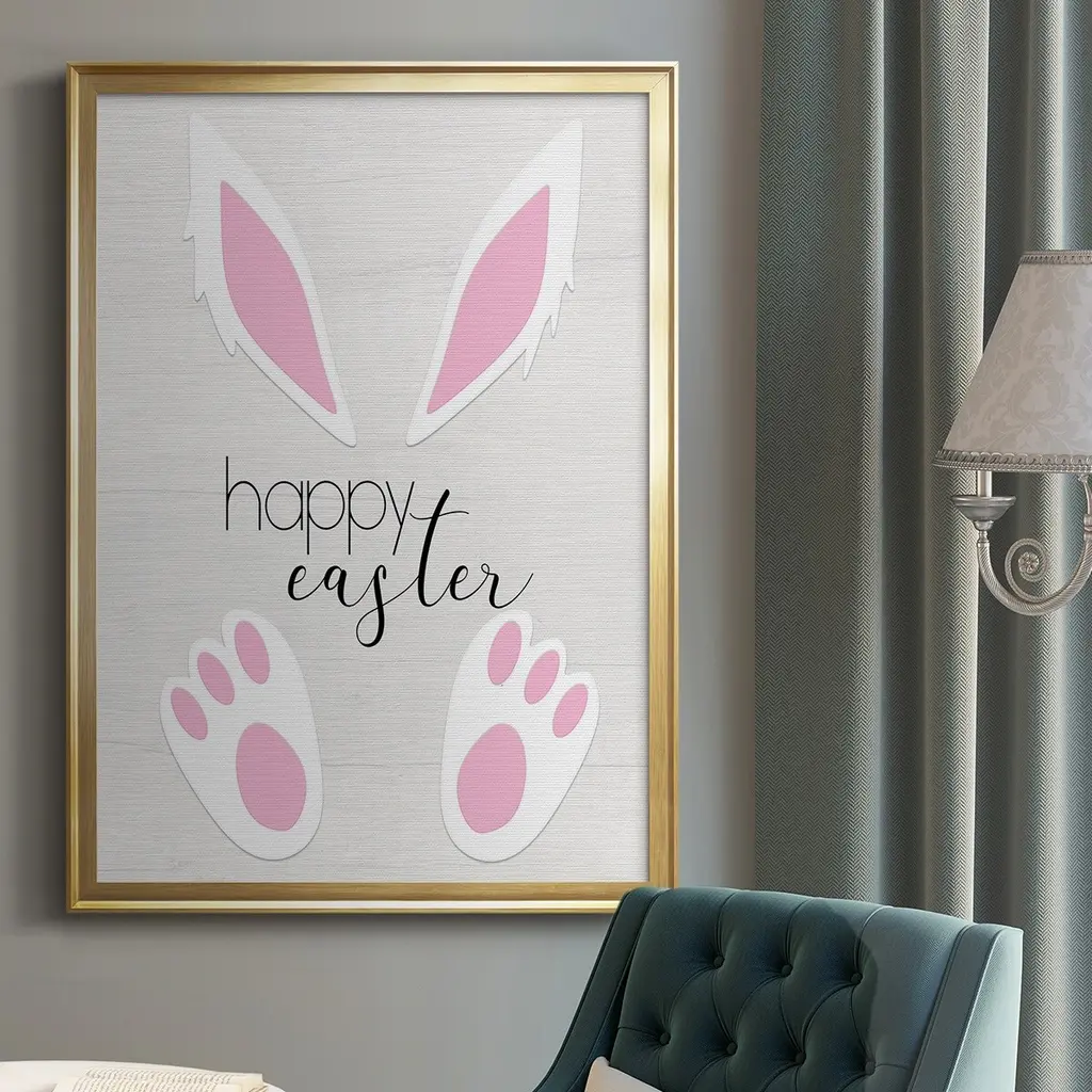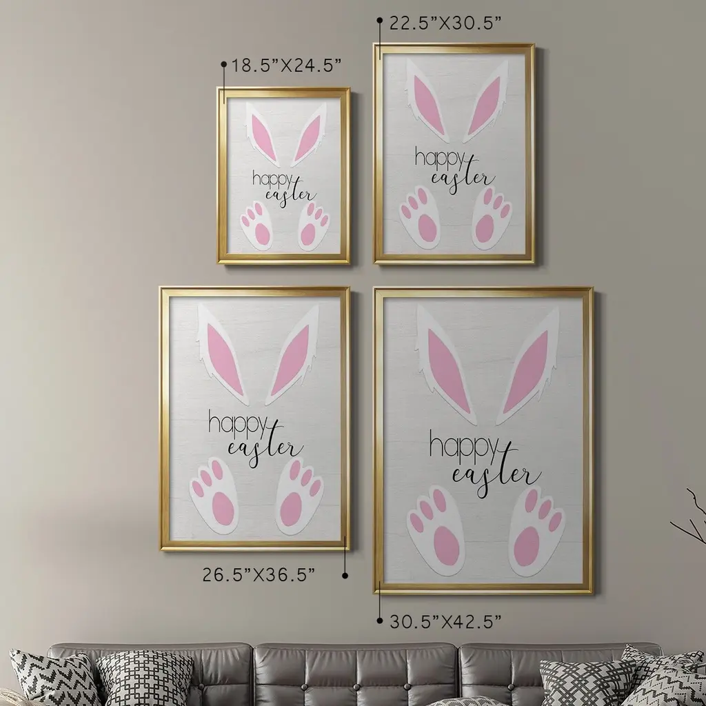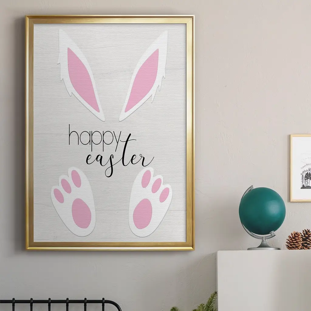 Happy Easter Premium Framed Print - Ready to Hang A Premium Framed Print created to last. Framed in distressed wood and available in an array of sizes and colors Featuring a beveled a solid wood stretcher bar, each piece comes ready to hand 4 SIZES AVAILABLE 30.5''X42.5'' - Overall Size 26.5'X36.5'' - Overall Size 22.5''x30.5'' - Overall Size 18.5''x24.5'' - Overall Size Each piece is made to order. Each piece comes with hanging hardware. Made in the USA Ready to Hang