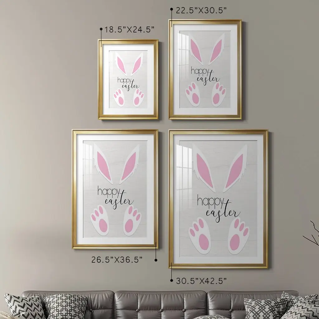 Happy Easter Premium Framed Print - Ready to Hang A Premium Framed Print created to last. Framed in distressed wood and available in an array of sizes and colors Featuring a beveled a solid wood stretcher bar, each piece comes ready to hand 4 SIZES AVAILABLE 30.5''X42.5'' - Overall Size 26.5'X36.5'' - Overall Size 22.5''x30.5'' - Overall Size 18.5''x24.5'' - Overall Size Each piece is made to order. Each piece comes with hanging hardware. Made in the USA Ready to Hang Giclee Paper Print Acrylic Glass Beveled Matt Board