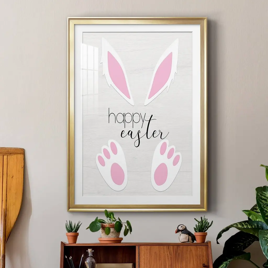 Happy Easter Premium Framed Print - Ready to Hang A Premium Framed Print created to last. Framed in distressed wood and available in an array of sizes and colors Featuring a beveled a solid wood stretcher bar, each piece comes ready to hand 4 SIZES AVAILABLE 30.5''X42.5'' - Overall Size 26.5'X36.5'' - Overall Size 22.5''x30.5'' - Overall Size 18.5''x24.5'' - Overall Size Each piece is made to order. Each piece comes with hanging hardware. Made in the USA Ready to Hang Giclee Paper Print Acrylic Glass Beveled Matt Board