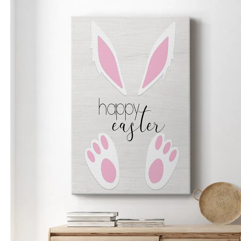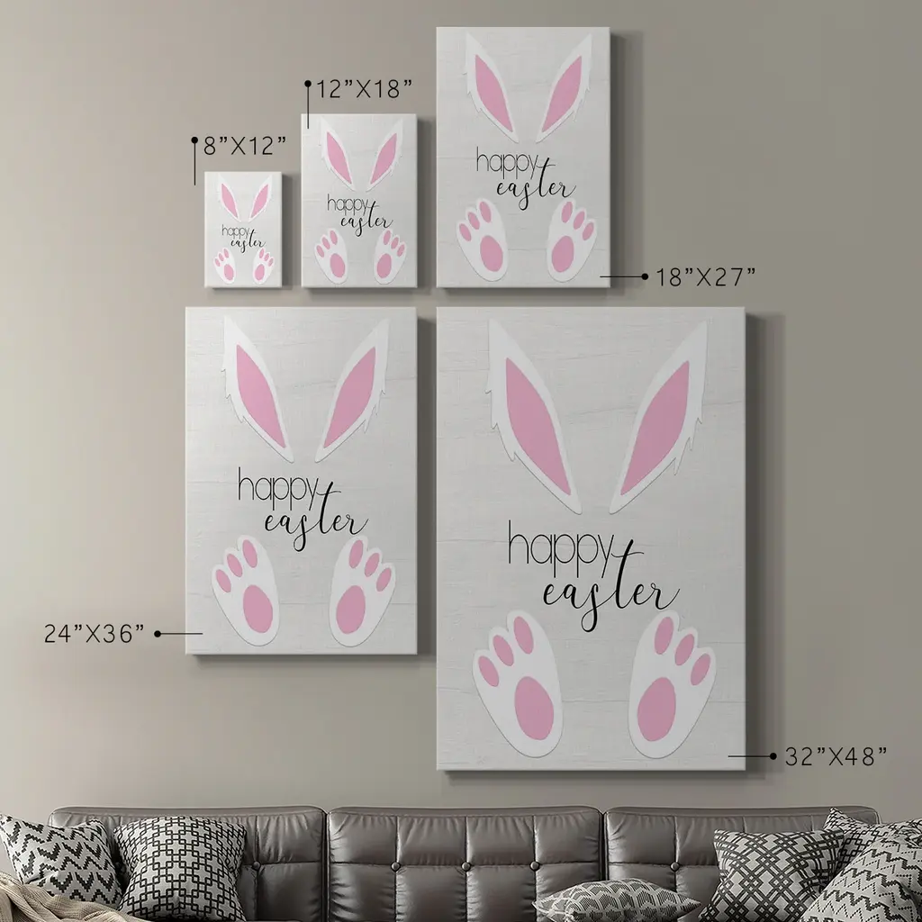 Happy Easter Premium Gallery Wrapped Canvas - Ready to Hang A premium hand stretched gallery wrapped canvas print created to last. Featuring a beveled a solid wood stretcher bar, each piece comes ready to hand 6 SIZES AVAILABLE 8''X12'' - Overall Size 12''X18'' - Overall Size 18''X27'' - Overall Size 24''x36'' - Overall Size 32''x48'' - Overall Size 40''x60'' - Overall Size Each piece is made to order. Built to Last Each piece comes ready to hang Solid wood stretcher Fade and Water resistant Made domestically