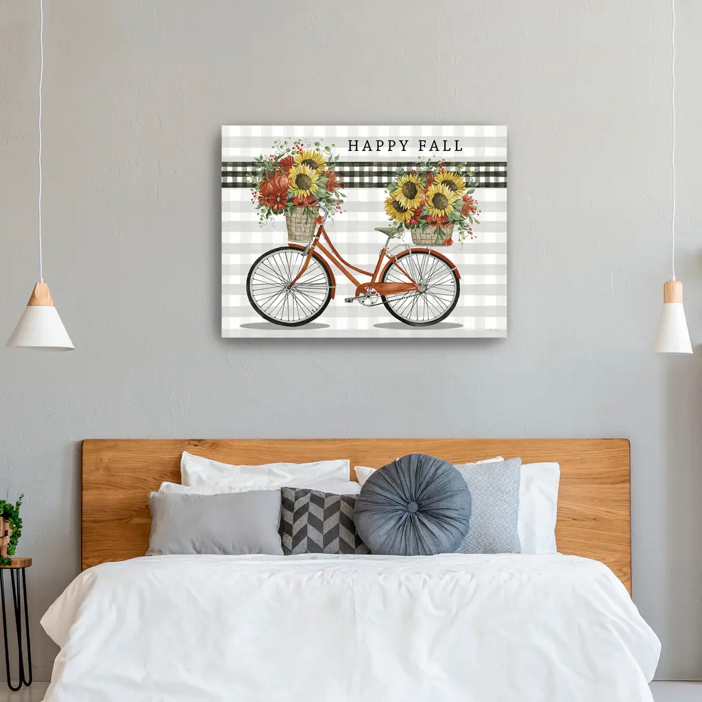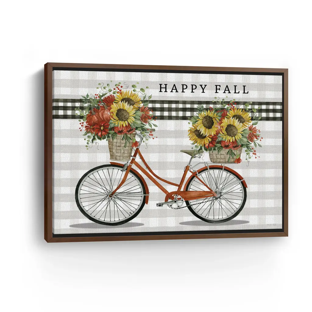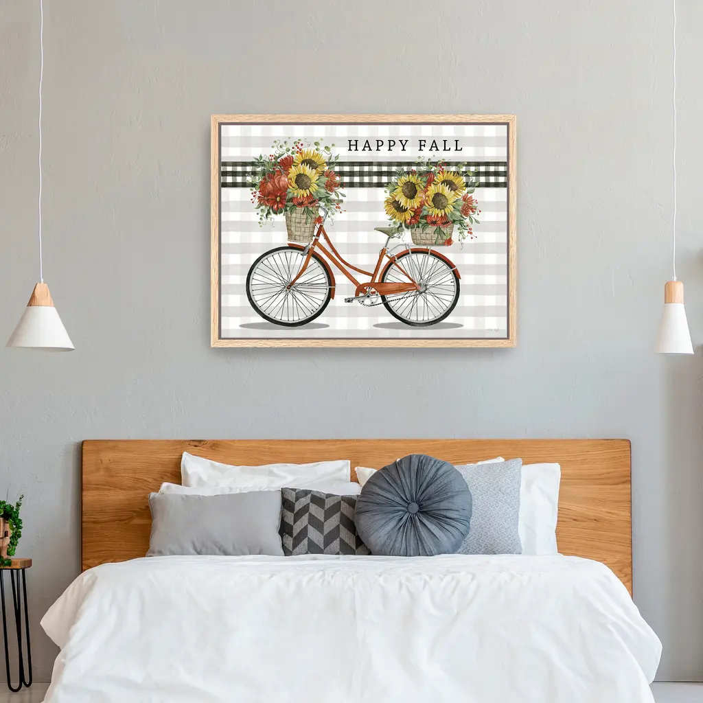 Happy Fall Bicycle Canvas Giclee - Framed / Dark Walnut / 18x24