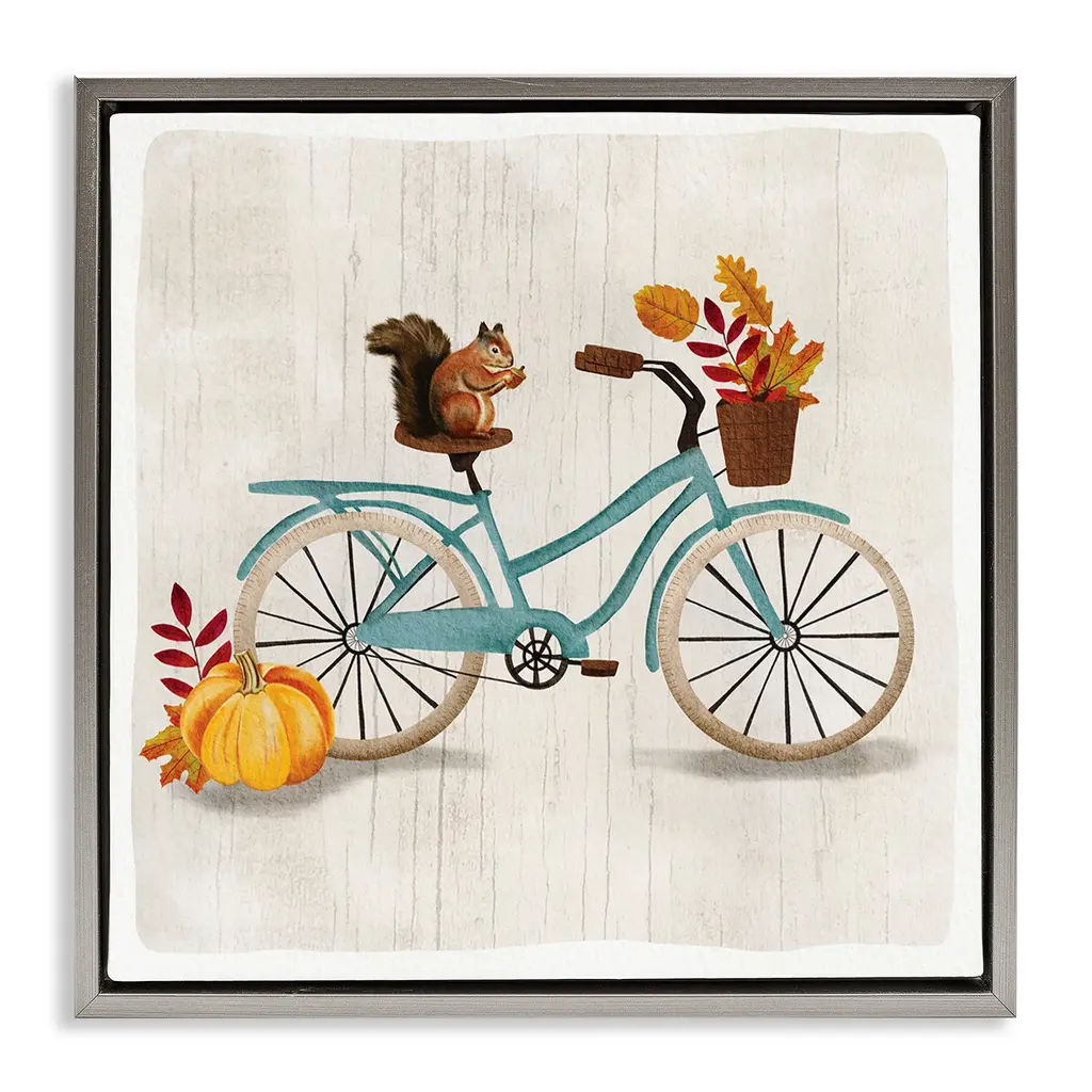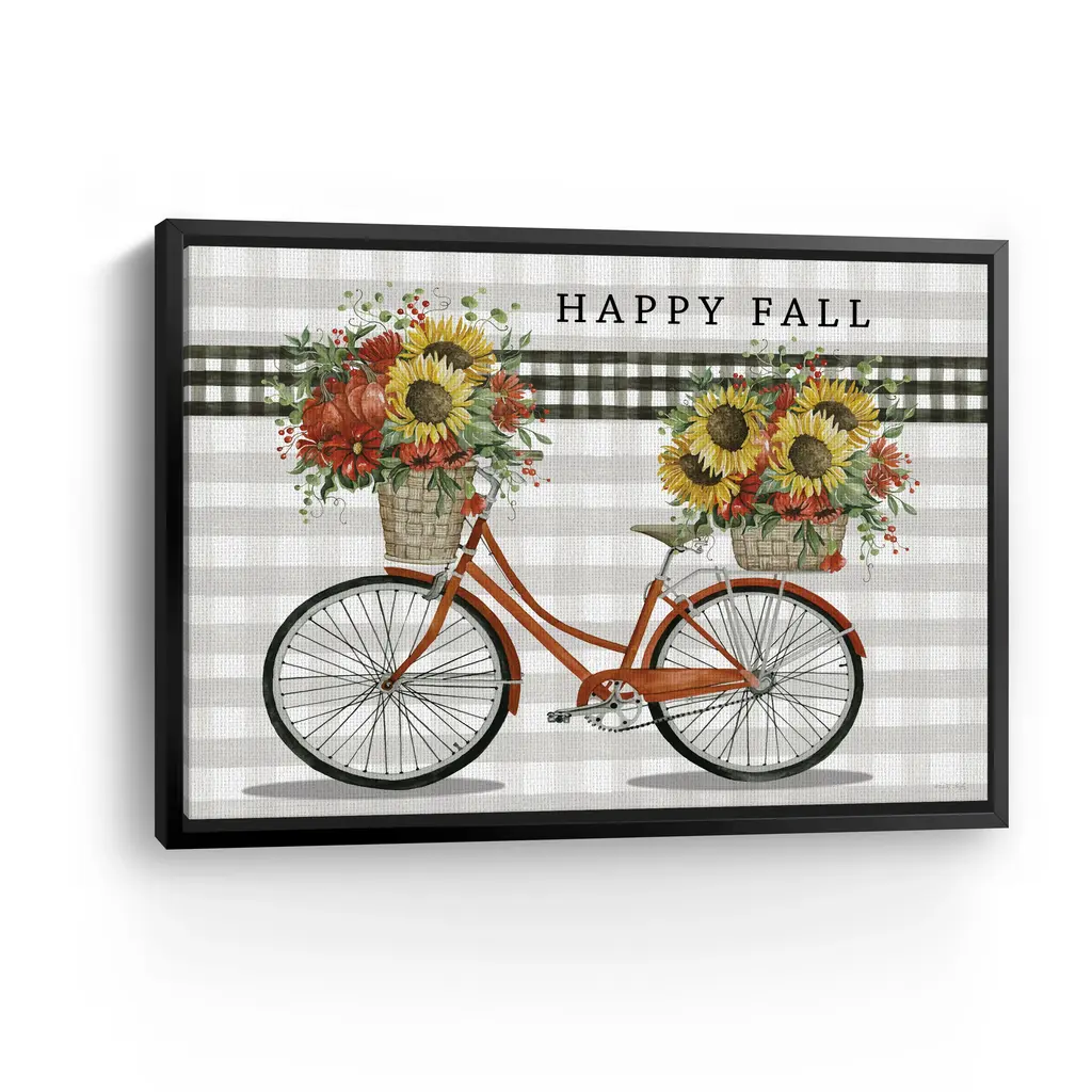Happy Fall Bicycle Canvas Giclee - Framed / Dark Walnut / 24x32
