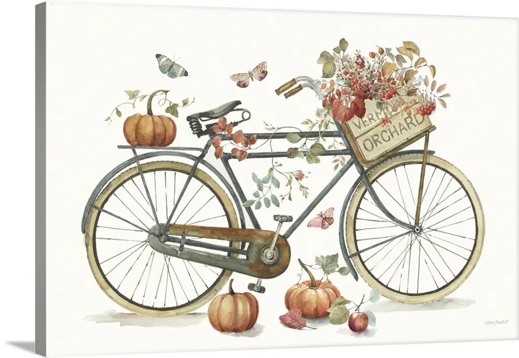 Infuse your space with seasonal charm through this fall bike canvas art—featuring whimsical floral hauls and a cozy, welcoming vibe that captures the heart of harvest season. Perfect for adding a playful yet rustic touch to your autumn décor. Our Gallery Wrap Canvas Prints are proudly assembled with high quality materials in California, USA. Each piece is printed on a thick, archival grade canvas using Giclee technology. It is then hand-stretched by our experienced artisans over solid wood bars, which will not warp over time. The final product is a piece personally crafted for you to confidently display on your wall. Care and Assembly: Ensure that the location of your piece has little to no exposure to heat, sunlight, and moisture. Wipe clean, only if needed. Each piece includes a sawtooth hanger to hang on your wall horizontally.