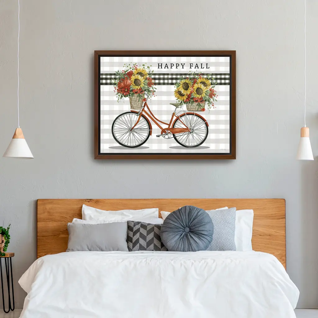 Happy Fall Bicycle Canvas Giclee - Framed / Dark Walnut / 30x40