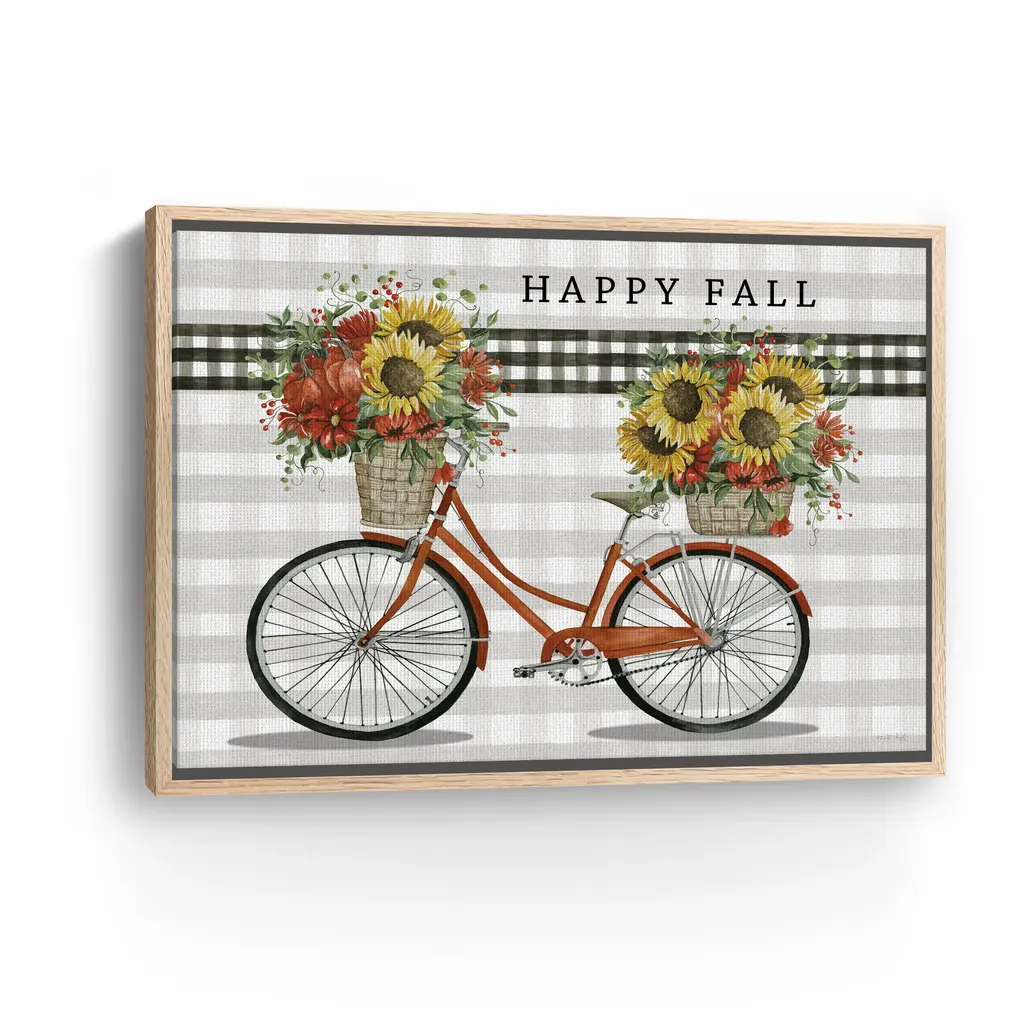 Happy Fall Bicycle Canvas Giclee - Framed / Oak / 30x40
