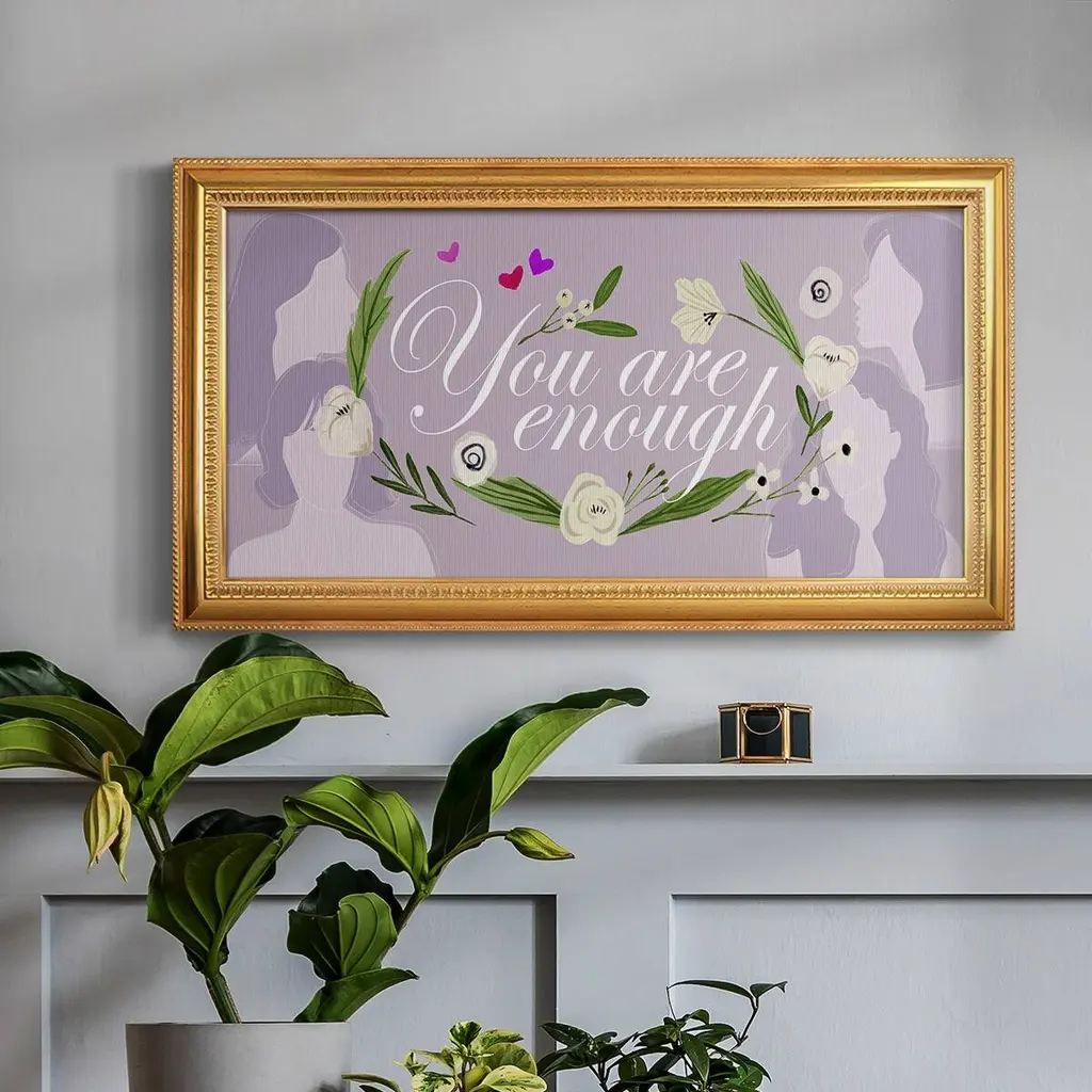 Happy Galentine's Day Collection D Premium Framed Canvas- Ready to Hang A Premium Framed Canvas created to last. Framed in distressed wood and available in an array of sizes and colors Featuring a beveled a solid wood stretcher bar, each piece comes ready to hand 3 SIZES AVAILABLE 21''X37'' - Overall Size 25''X45'' - Overall Size 29''x53'' - Overall Size Each piece is made to order. Each piece comes with hanging hardware. Made in the USA Ready to Hang Giclee Paper Print Acrylic Glass Beveled Matt Board