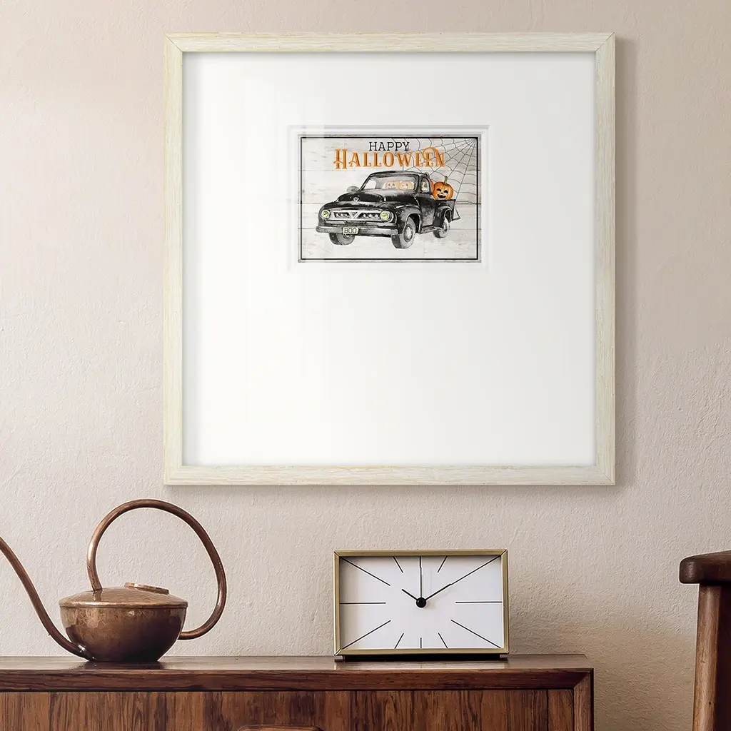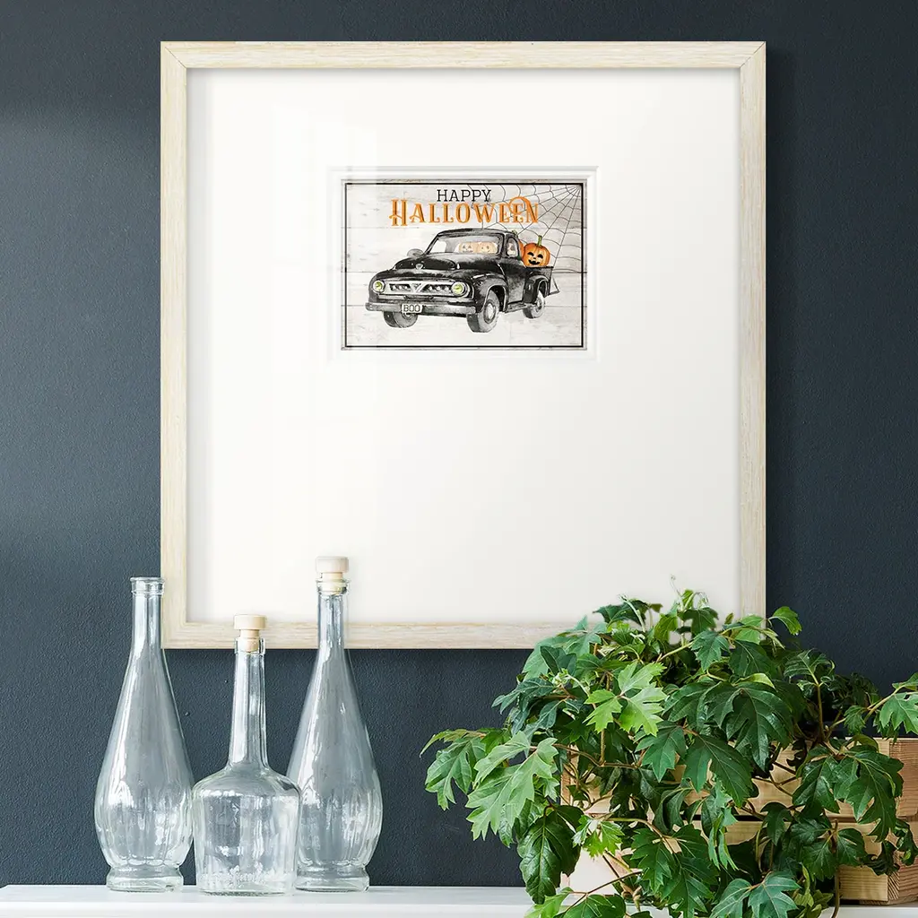 Happy HalloweenPremium Framed Print A framed cold pressed paper print featuring superior double matting and quality frame. 2 SIZES AVAILABLE 16''X16''' - Overall Size 20''X20''' - Overall Size Each piece is made to order. Each piece comes with hanging hardware. Made in the USA Ready to Hang Giclee Paper Print Plexiglass Beveled Matt Board Double Matte Board