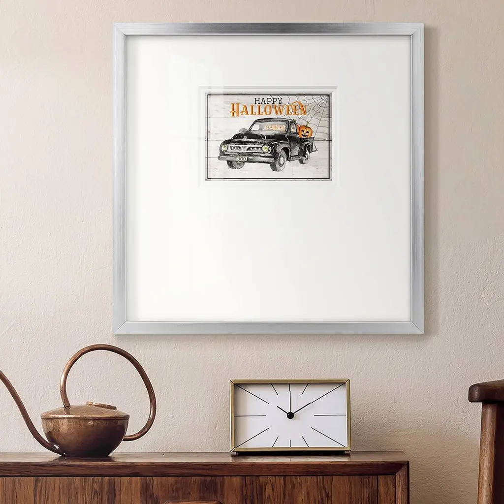 Happy HalloweenPremium Framed Print A framed cold pressed paper print featuring superior double matting and quality frame. 2 SIZES AVAILABLE 16''X16''' - Overall Size 20''X20''' - Overall Size Each piece is made to order. Each piece comes with hanging hardware. Made in the USA Ready to Hang Giclee Paper Print Plexiglass Beveled Matt Board Double Matte Board
