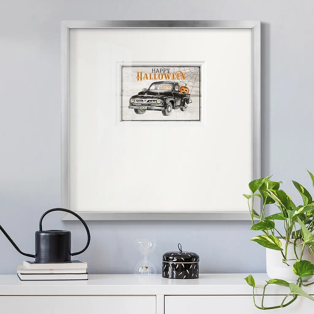Happy HalloweenPremium Framed Print A framed cold pressed paper print featuring superior double matting and quality frame. 2 SIZES AVAILABLE 16''X16''' - Overall Size 20''X20''' - Overall Size Each piece is made to order. Each piece comes with hanging hardware. Made in the USA Ready to Hang Giclee Paper Print Plexiglass Beveled Matt Board Double Matte Board
