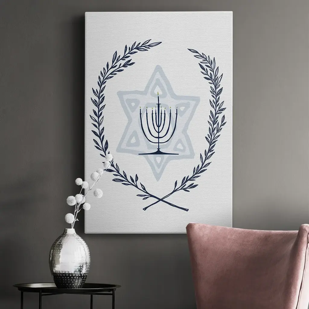 Happy Hanukkah I Premium Gallery Wrapped Canvas - Ready to Hang A premium hand stretched gallery wrapped canvas print created to last. Featuring a beveled a solid wood stretcher bar, each piece comes ready to hand 6 SIZES AVAILABLE 8''X12'' - Overall Size 12''X18'' - Overall Size 18''X27'' - Overall Size 24''x36'' - Overall Size 32''x48'' - Overall Size 40''x60'' - Overall Size Each piece is made to order. Built to Last Each piece comes ready to hang Solid wood stretcher Fade and Water resistant Made domestically
