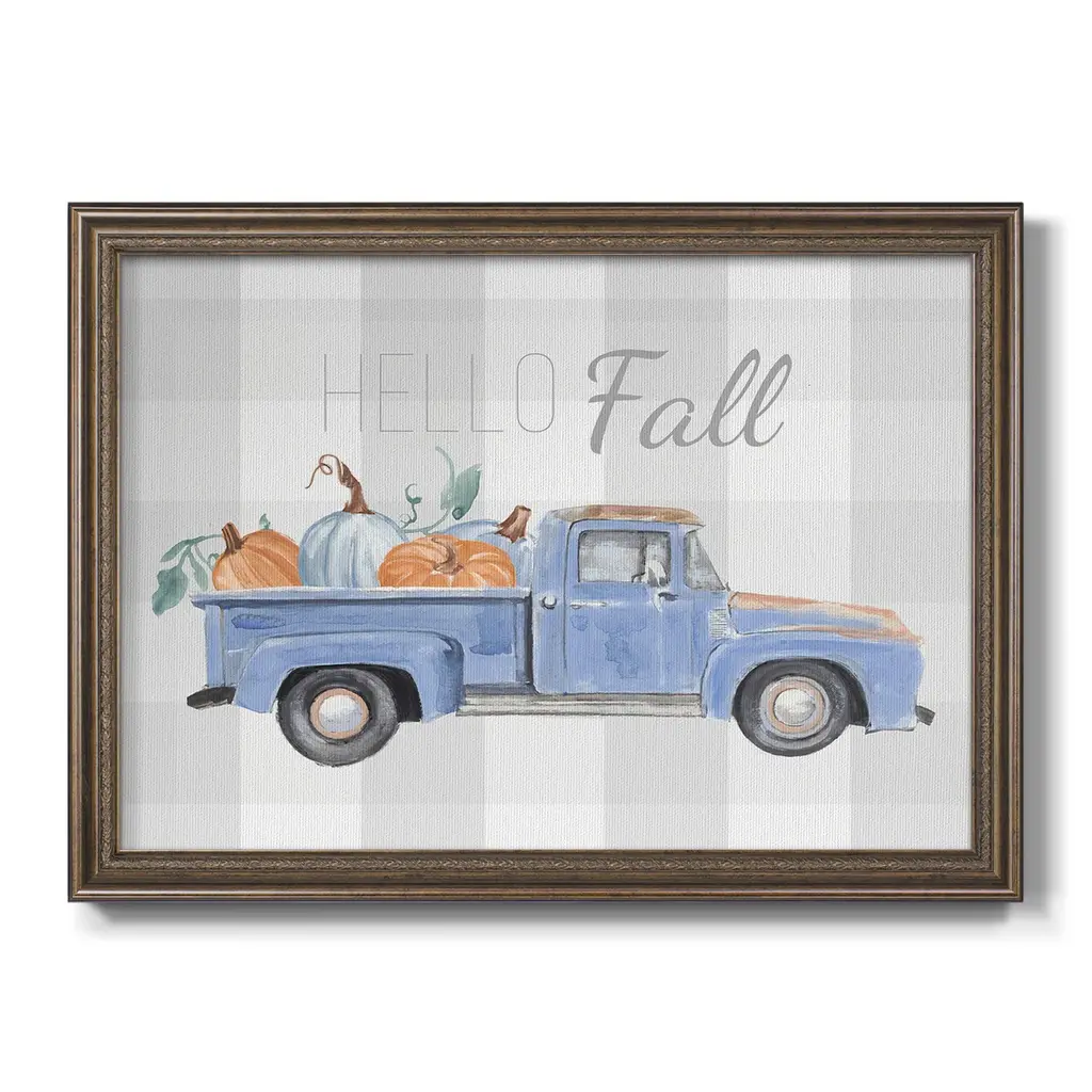 Happy Harvest II Premium Framed Canvas- Ready to Hang A Premium Framed Canvas created to last. Framed in distressed wood and available in an array of sizes and colors Featuring a beveled a solid wood stretcher bar, each piece comes ready to hand 3 SIZES AVAILABLE 16''X20'' - Overall Size 18'X27'' - Overall Size 24''x36'' - Overall Size Each piece is made to order. Each piece comes with hanging hardware. Made in the USA Ready to Hang Giclee Paper Print Acrylic Glass Beveled Matt Board