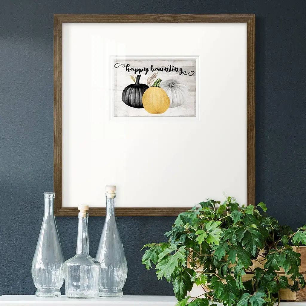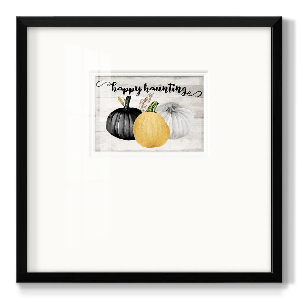 Happy HauntingPremium Framed Print A framed cold pressed paper print featuring superior double matting and quality frame. 2 SIZES AVAILABLE 16''X16''' - Overall Size 20''X20''' - Overall Size Each piece is made to order. Each piece comes with hanging hardware. Made in the USA Ready to Hang Giclee Paper Print Plexiglass Beveled Matt Board Double Matte Board