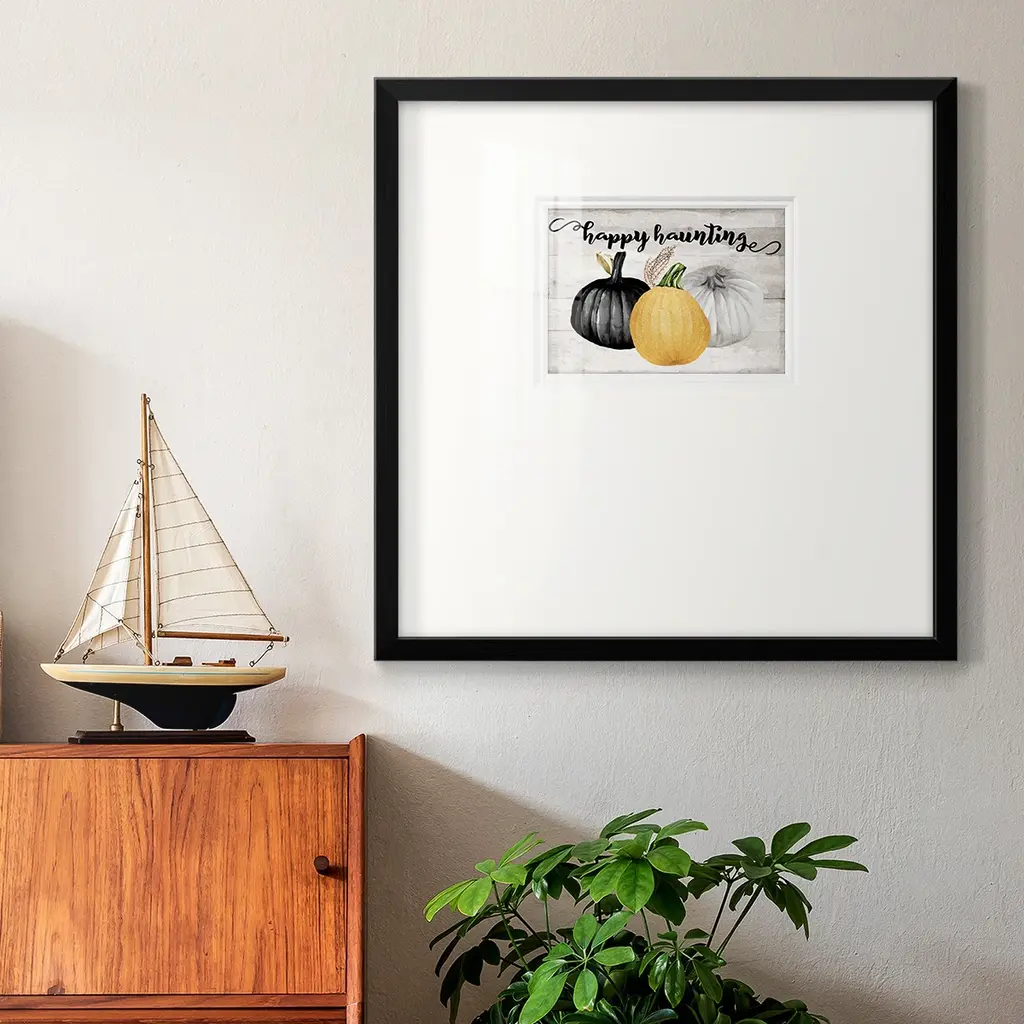 Happy HauntingPremium Framed Print A framed cold pressed paper print featuring superior double matting and quality frame. 2 SIZES AVAILABLE 16''X16''' - Overall Size 20''X20''' - Overall Size Each piece is made to order. Each piece comes with hanging hardware. Made in the USA Ready to Hang Giclee Paper Print Plexiglass Beveled Matt Board Double Matte Board
