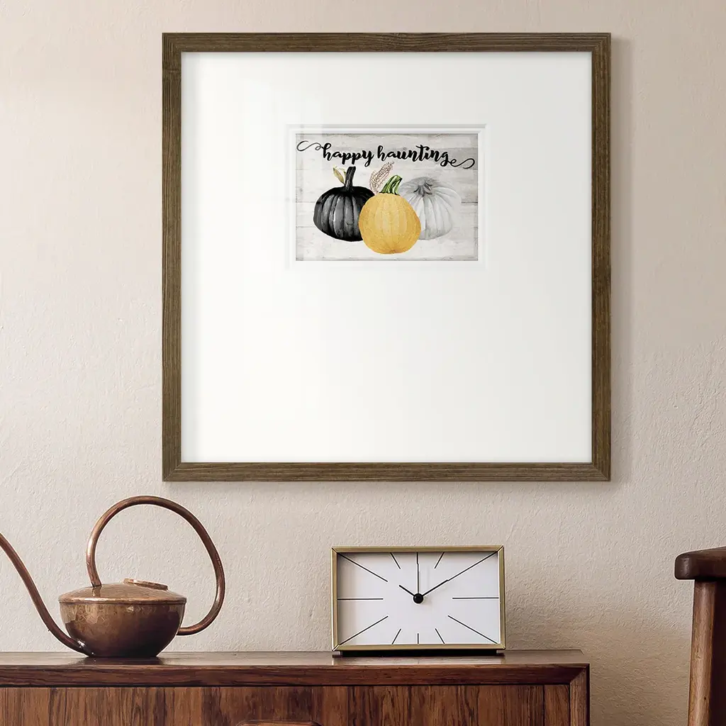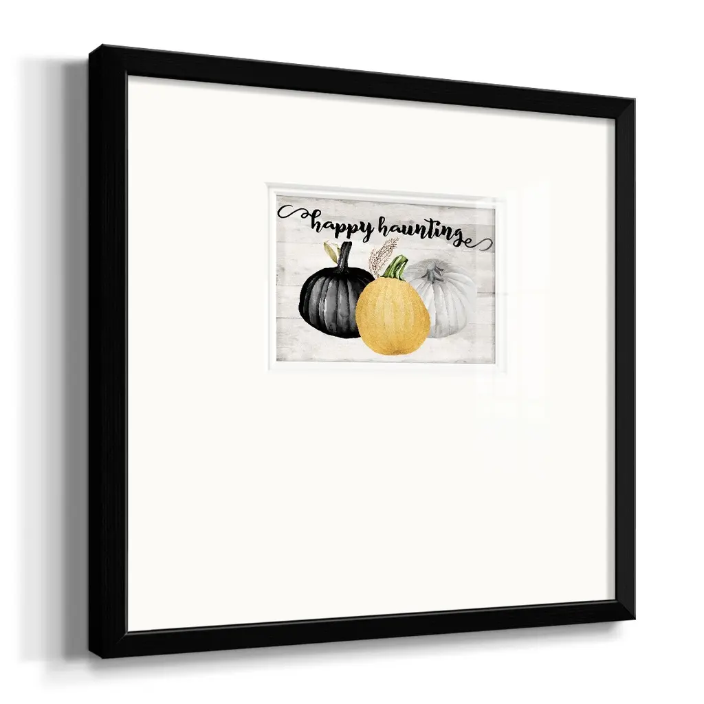 Happy HauntingPremium Framed Print A framed cold pressed paper print featuring superior double matting and quality frame. 2 SIZES AVAILABLE 16''X16''' - Overall Size 20''X20''' - Overall Size Each piece is made to order. Each piece comes with hanging hardware. Made in the USA Ready to Hang Giclee Paper Print Plexiglass Beveled Matt Board Double Matte Board