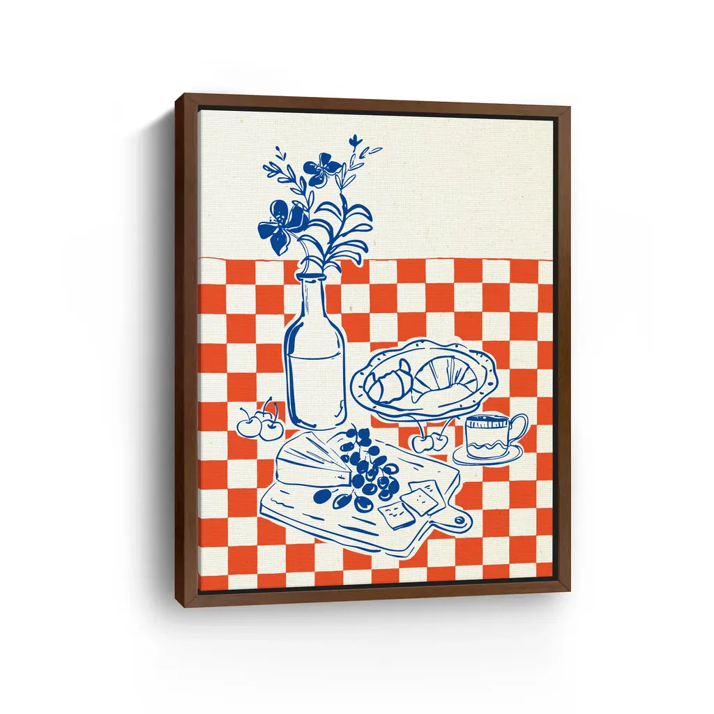 Add warmth to your space with this beautifully illustrated canvas showcasing a breakfast table adorned with croissants, cheese, and a bouquet of flowers. Its soft tones and vintage aesthetic make it a perfect fit for farmhouse kitchens or cozy cafes. Our Gallery Wrap Canvas Prints are proudly assembled with high quality materials in California, USA. Each piece is printed on a thick, archival grade canvas using Giclee technology. It is then hand-stretched by our experienced artisans over solid wood bars, which will not warp over time. The final product is a piece personally crafted for you to confidently display on your wall. Care and Assembly: Ensure that the location of your piece has little to no exposure to heat, sunlight, and moisture. Wipe clean, only if needed. Each piece includes hanging hardware to hang on your wall vertically.