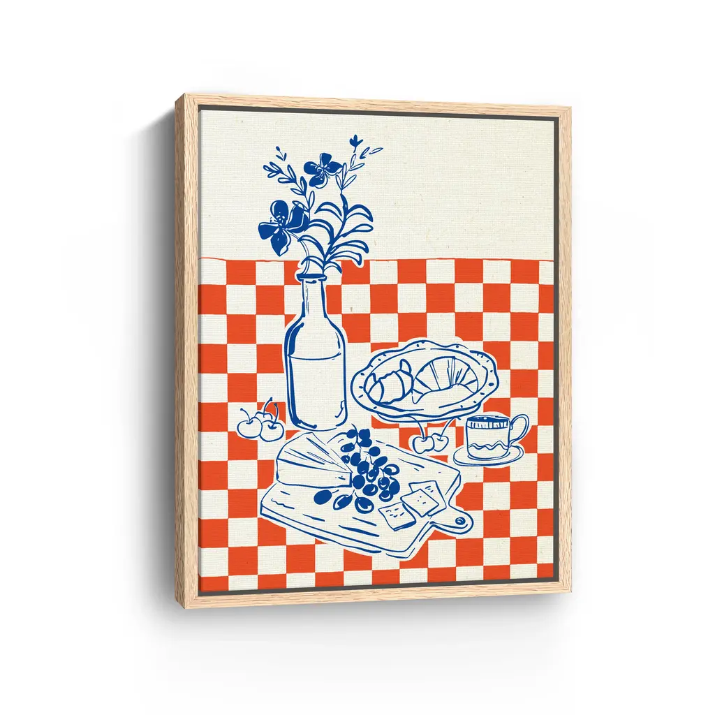 Add warmth to your space with this beautifully illustrated canvas showcasing a breakfast table adorned with croissants, cheese, and a bouquet of flowers. Its soft tones and vintage aesthetic make it a perfect fit for farmhouse kitchens or cozy cafes. Our Gallery Wrap Canvas Prints are proudly assembled with high quality materials in California, USA. Each piece is printed on a thick, archival grade canvas using Giclee technology. It is then hand-stretched by our experienced artisans over solid wood bars, which will not warp over time. The final product is a piece personally crafted for you to confidently display on your wall. Care and Assembly: Ensure that the location of your piece has little to no exposure to heat, sunlight, and moisture. Wipe clean, only if needed. Each piece includes hanging hardware to hang on your wall vertically.
