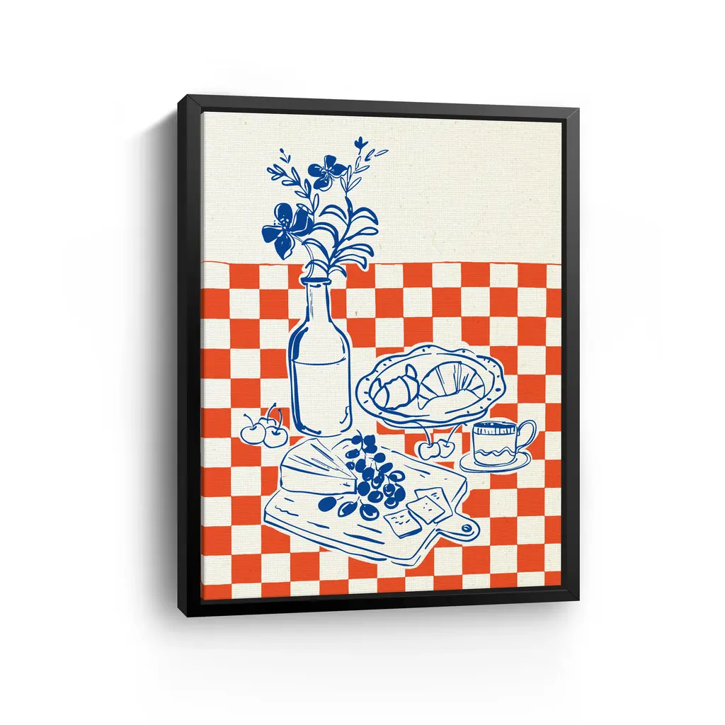 Add warmth to your space with this beautifully illustrated canvas showcasing a breakfast table adorned with croissants, cheese, and a bouquet of flowers. Its soft tones and vintage aesthetic make it a perfect fit for farmhouse kitchens or cozy cafes. Our Gallery Wrap Canvas Prints are proudly assembled with high quality materials in California, USA. Each piece is printed on a thick, archival grade canvas using Giclee technology. It is then hand-stretched by our experienced artisans over solid wood bars, which will not warp over time. The final product is a piece personally crafted for you to confidently display on your wall. Care and Assembly: Ensure that the location of your piece has little to no exposure to heat, sunlight, and moisture. Wipe clean, only if needed. Each piece includes hanging hardware to hang on your wall vertically.