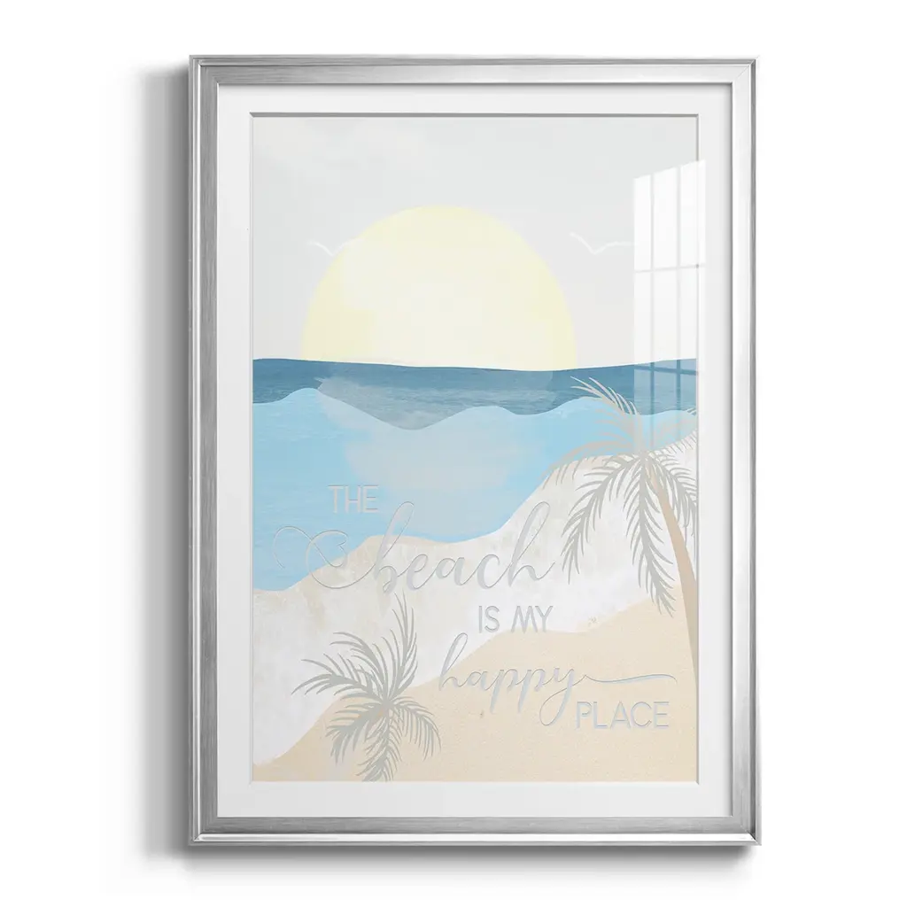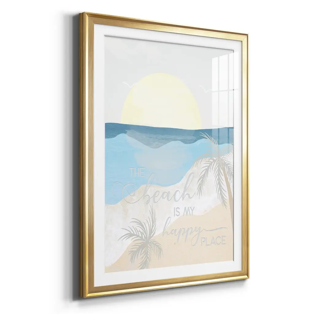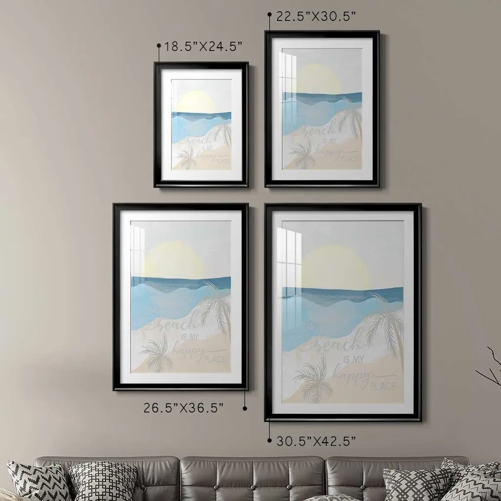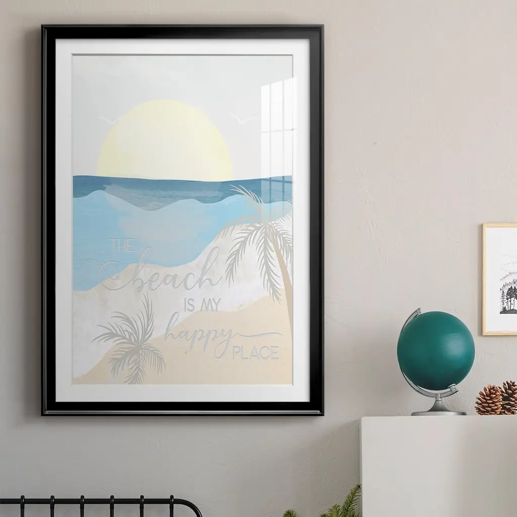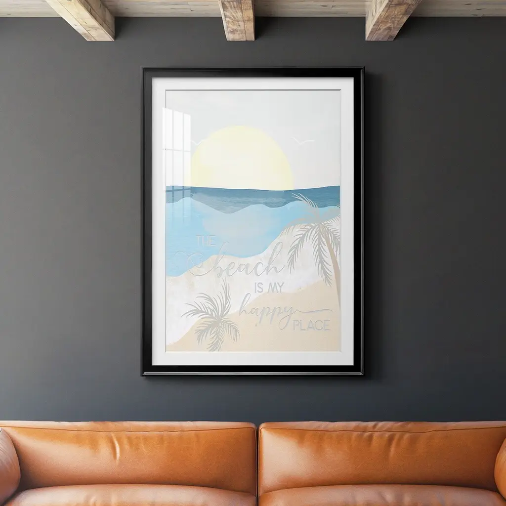 Happy Place Premium Framed Print - Ready to Hang A Premium Framed Print created to last. Framed in distressed wood and available in an array of sizes and colors Featuring a beveled a solid wood stretcher bar, each piece comes ready to hand 4 SIZES AVAILABLE 30.5''X42.5'' - Overall Size 26.5'X36.5'' - Overall Size 22.5''x30.5'' - Overall Size 18.5''x24.5'' - Overall Size Each piece is made to order. Each piece comes with hanging hardware. Made in the USA Ready to Hang Giclee Paper Print Acrylic Glass Beveled Matt Board