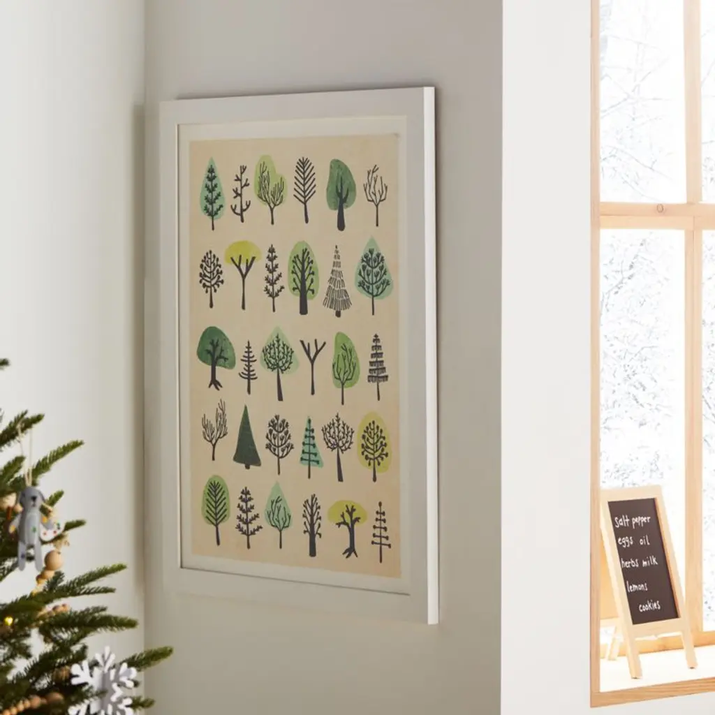 If your home could use a little extra nature inspo, this Happy Trees Framed Wall Art is the perfect pick. It features an array of different trees in a sweet illustrated style. With a natural wood frame, it arrives ready for display. Put it in your little one's gallery wall, or hang it as a woodsy finishing touch in kids rooms and nurseries.
