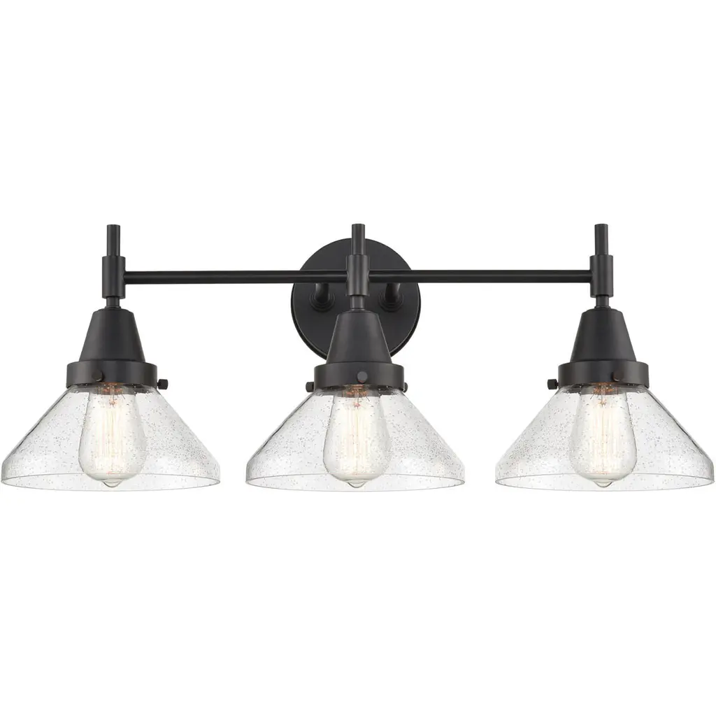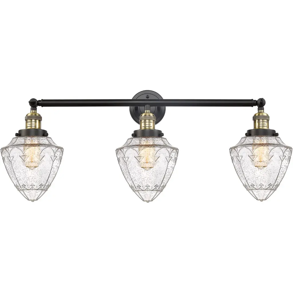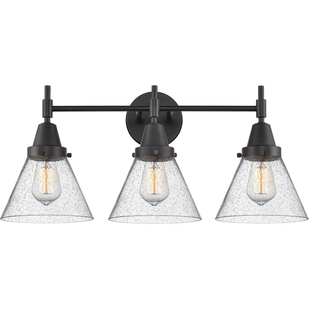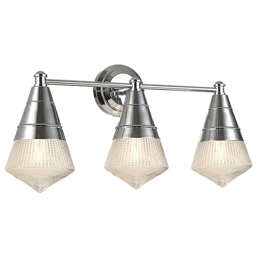 Add refined style to your space with the Hargreaves Vanity Light from Ethnicraft. Featuring pressed cone glass shades, this fixture provides a beautiful prismatic light diffusion, creating a warm and inviting atmosphere. The vertically lined glass is complemented by tapered metal accents that discreetly conceal the light source, delivering a polished and modern aesthetic. Perfect for transitional interiors, this vanity light enhances bathrooms or other intimate settings with its artistic form.