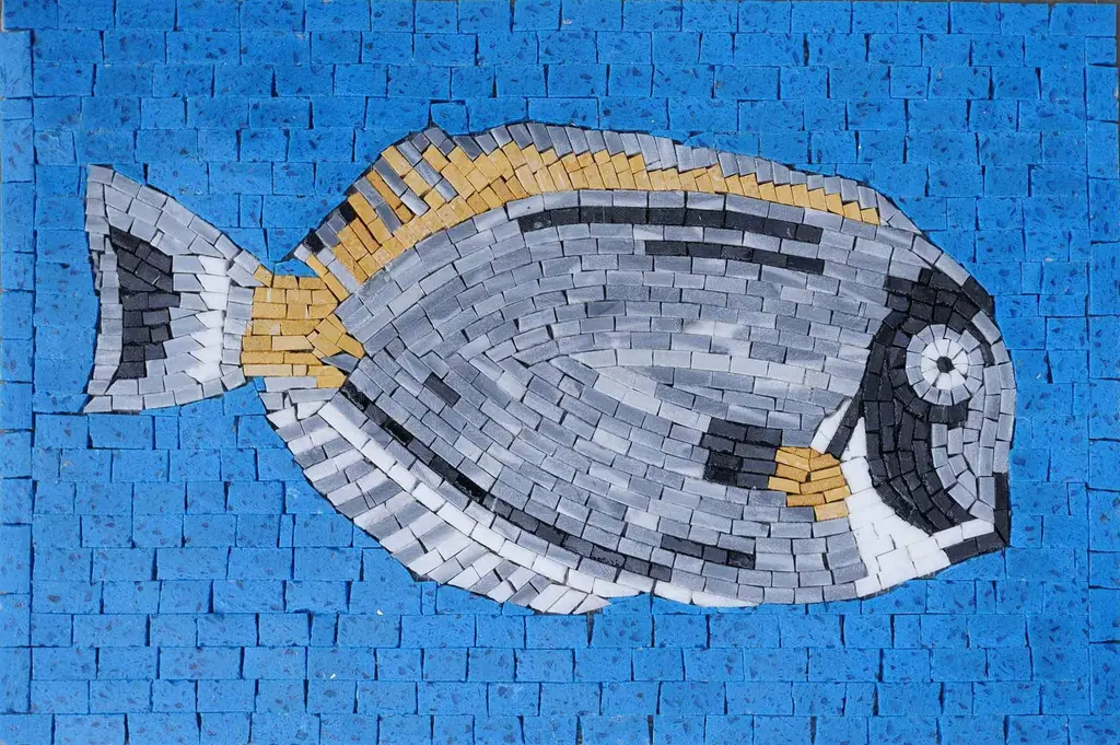 Introducing our stunning "Harlequin Tuskfish - Mosaic Fish Art," a captivating piece that brings the vibrant beauty of marine life into your space. This handmade mosaic showcases a solitary Harlequin Tuskfish, elegantly swimming against a rich, blue backdrop that evokes the serene depths of the ocean. Crafted with meticulous attention to detail, each piece of this art is individually assembled to create a lifelike representation of this remarkable fish, known for its striking colors and unique features. The Harlequin Tuskfish, with its vivid patterns and playful demeanor, is a symbol of the ocean's splendor and diversity. This artwork is more than just a decorative item; it is a conversation starter, a statement piece that reflects your appreciation for artistry and nature. Ideal for marine enthusiasts, art collectors, or anyone looking to add a splash of color to their home or office, this mosaic transforms any environment into a vibrant aquatic realm.The rich blue background not only complements the intricate details of the Tuskfish but also captures the essence of tranquil waters. Whether displayed in your living room, study, or gallery wall, this piece harmonizes beautifully with various decor styles, from coastal and contemporary to eclectic and traditional.Each mosaic is handmade by skilled artisans, ensuring that no two pieces are exactly alike. This unique characteristic adds to the charm and individuality of your artwork, making it a treasured addition to your collection. Invest in the beauty of the sea with the "Harlequin Tuskfish - Mosaic Fish Art." Perfect as a gift for a loved one or a special treat for yourself, it invites the wonders of the ocean into your home. Experience the allure of marine life every day and let this exquisite art piece inspire and uplift your surroundings.