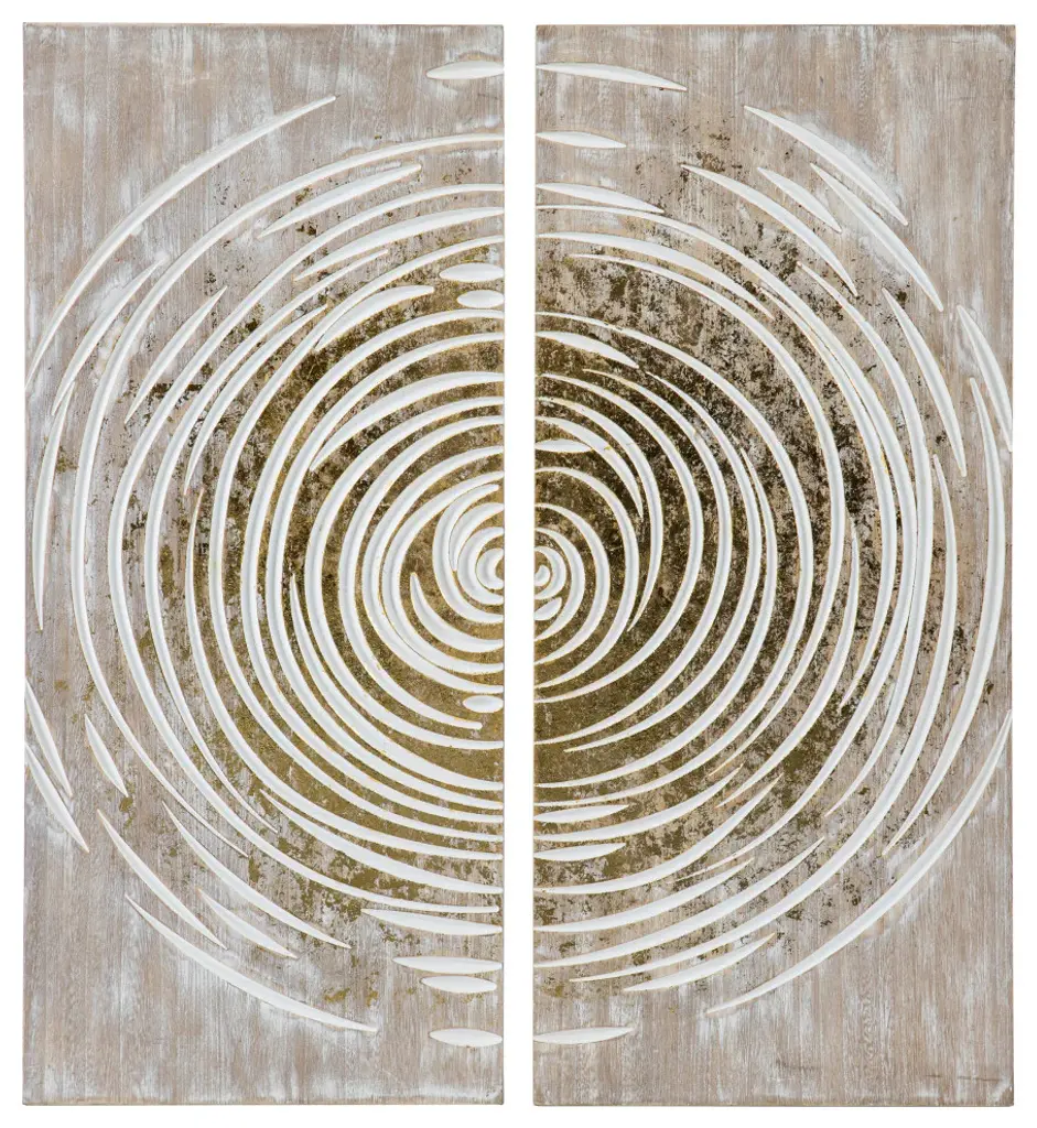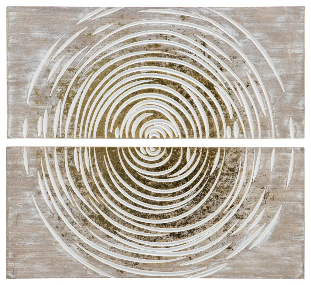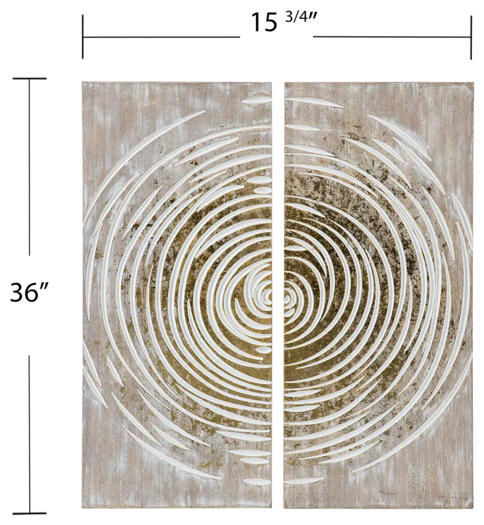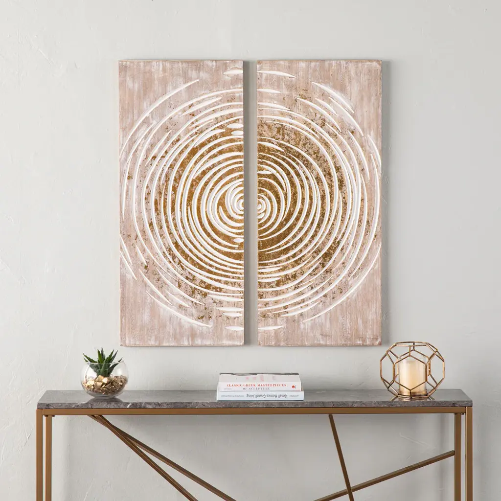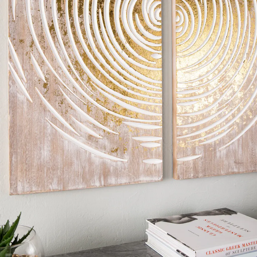 Transform your wallspace this modern wall art set. White paint highlights the carved, circular pattern, while gold foil accents add a bold pop of color. Separate panels to create a cohesive look throughout your open concept living spaceor hang together as an oversized accent piece in your entryway. Bring an organic feel to your home when you hang this wall Decor set in your living room or dining room.