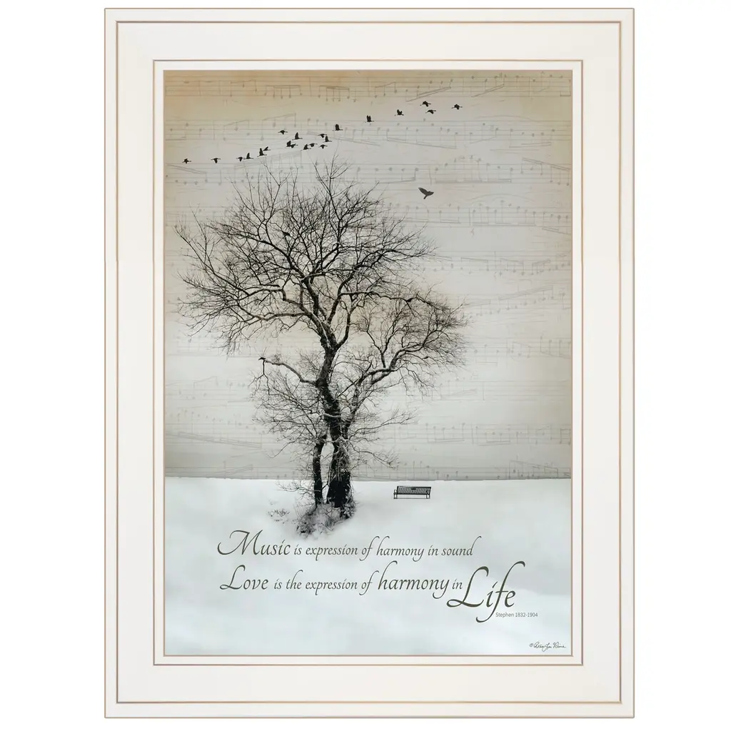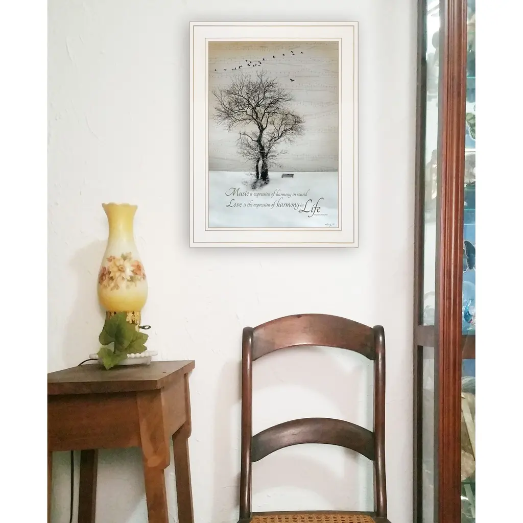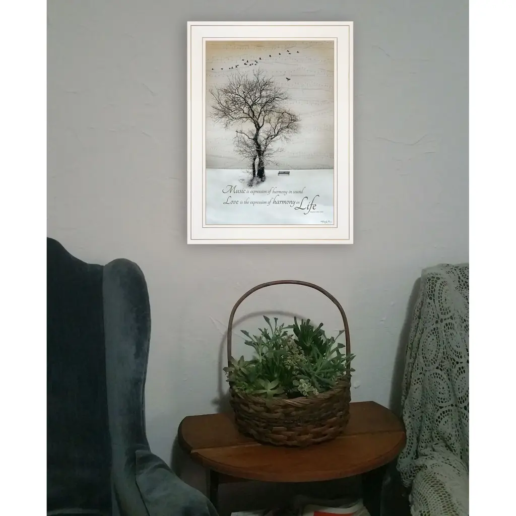 Unique and decorative, this harmony 1 white framed print wall art will leave a lasting impression. This print is a visual artistic expression that allows you to decorate your space in style. Reproduced for you on paper, this hanging decorative accent will be a trendy and fashionable way to dress your walls. Hang on your wall to add some up to date fashion and decoration. Instantly liven up your space with this art that brings color and dimension to your walls. 19" H x 15" W x 1" D