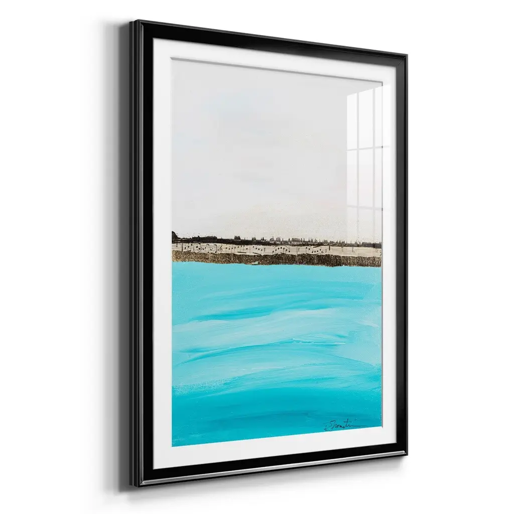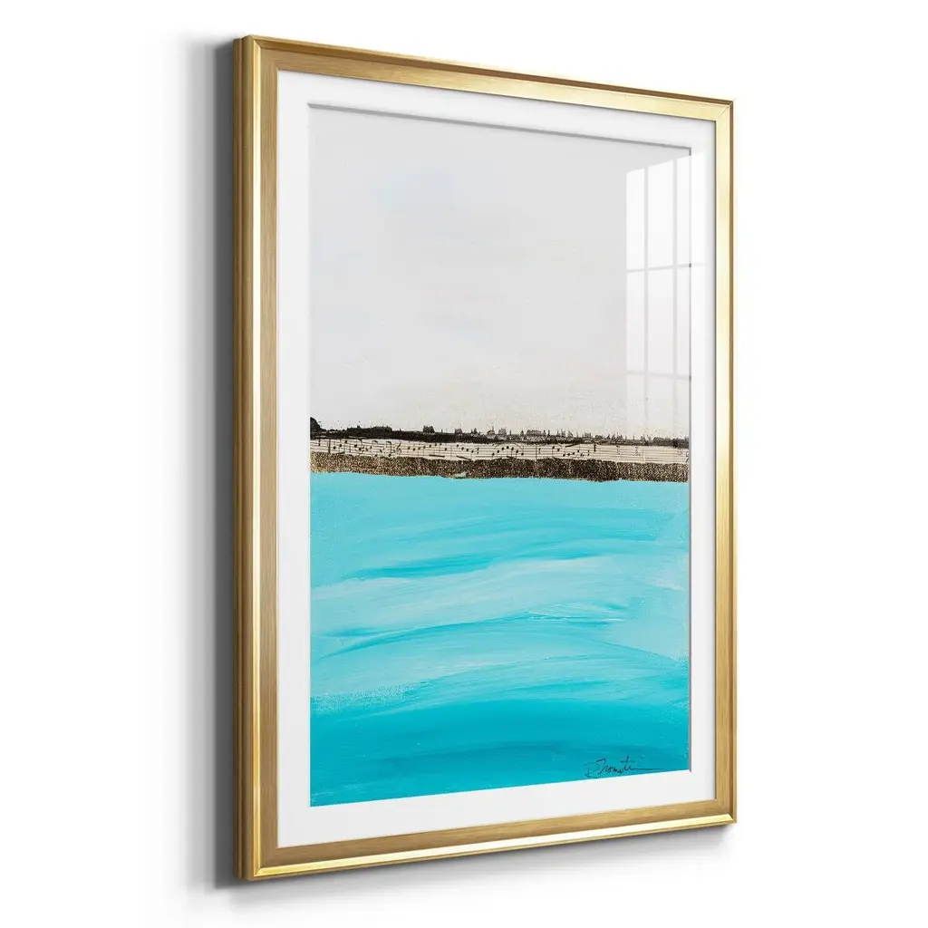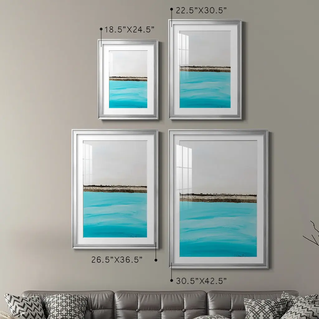 Harmony in Turquiose Premium Framed Print - Ready to Hang A Premium Framed Print created to last. Framed in distressed wood and available in an array of sizes and colors Featuring a beveled a solid wood stretcher bar, each piece comes ready to hand 4 SIZES AVAILABLE 30.5''X42.5'' - Overall Size 26.5'X36.5'' - Overall Size 22.5''x30.5'' - Overall Size 18.5''x24.5'' - Overall Size Each piece is made to order. Each piece comes with hanging hardware. Made in the USA Ready to Hang Giclee Paper Print Acrylic Glass Beveled Matt Board