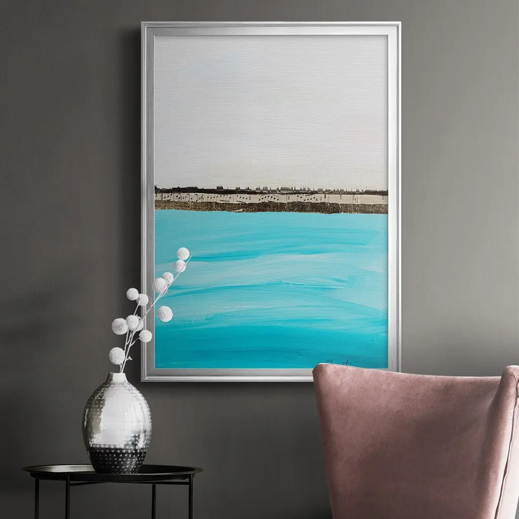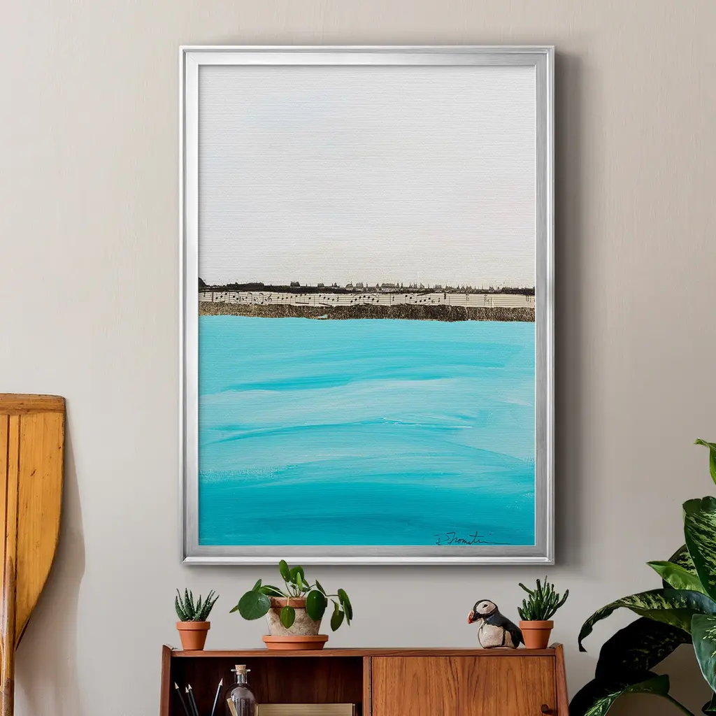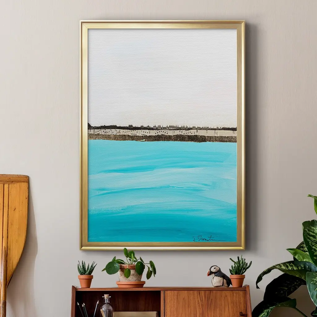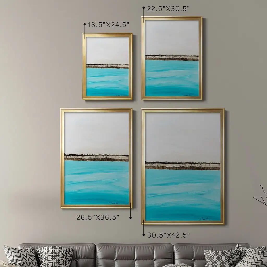 Harmony in Turquiose Premium Framed Print - Ready to Hang A Premium Framed Print created to last. Framed in distressed wood and available in an array of sizes and colors Featuring a beveled a solid wood stretcher bar, each piece comes ready to hand 4 SIZES AVAILABLE 30.5''X42.5'' - Overall Size 26.5'X36.5'' - Overall Size 22.5''x30.5'' - Overall Size 18.5''x24.5'' - Overall Size Each piece is made to order. Each piece comes with hanging hardware. Made in the USA Ready to Hang
