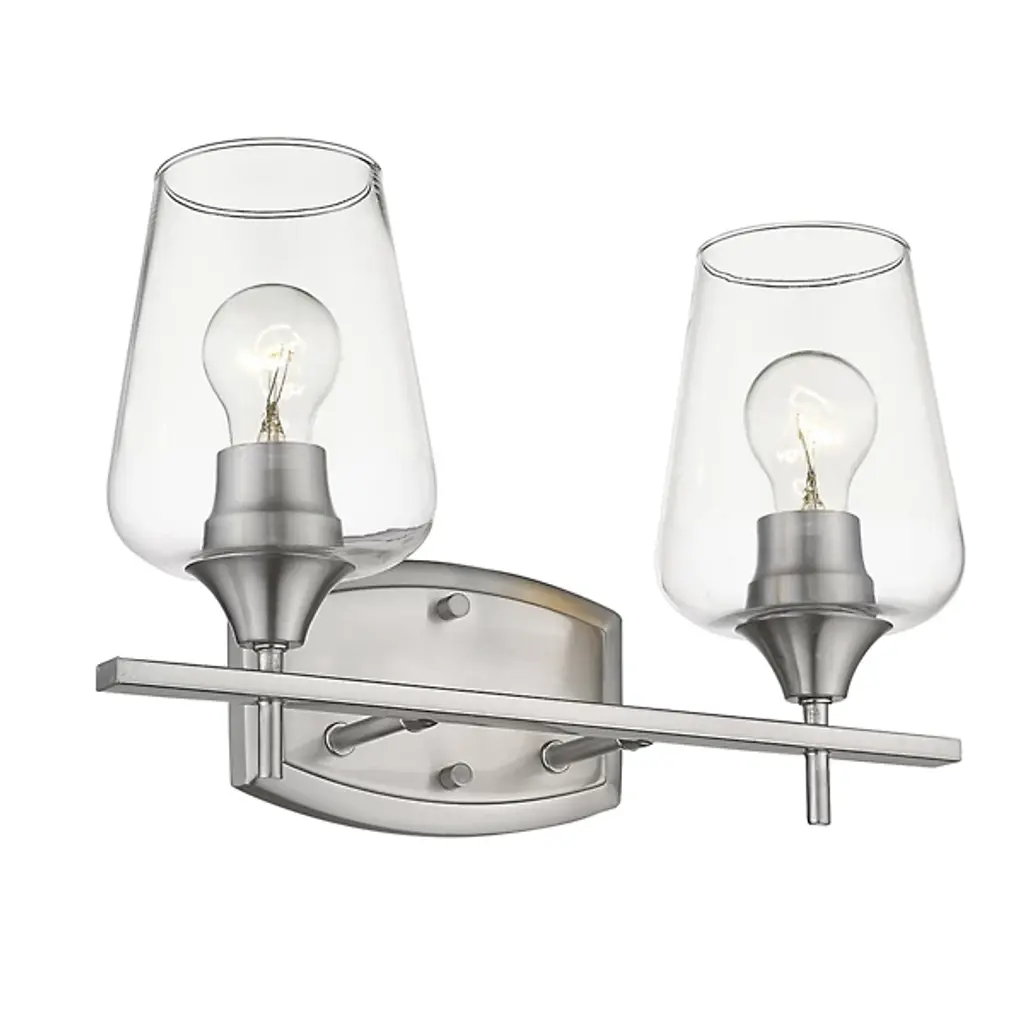 Illuminate your lavatory with the highly refined Harriet Vanity Light by Alder & Ore. A curved backplate secures to your wall, providing a foundation for a horizontally aligned steel rod. Onto this rod are fixed numerous incandescent bulbs contained within individual glass shades. The eye is drawn to these shades’ distended silhouettes, which resemble the shapes of lovely wine glasses. Place this fixture near your vanity mirror and receive ample amounts of light while completing your grooming routine.