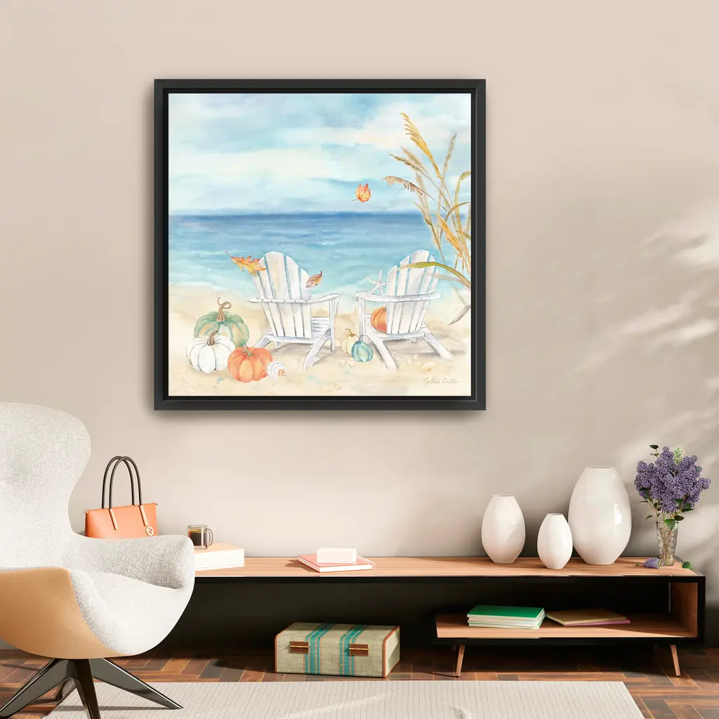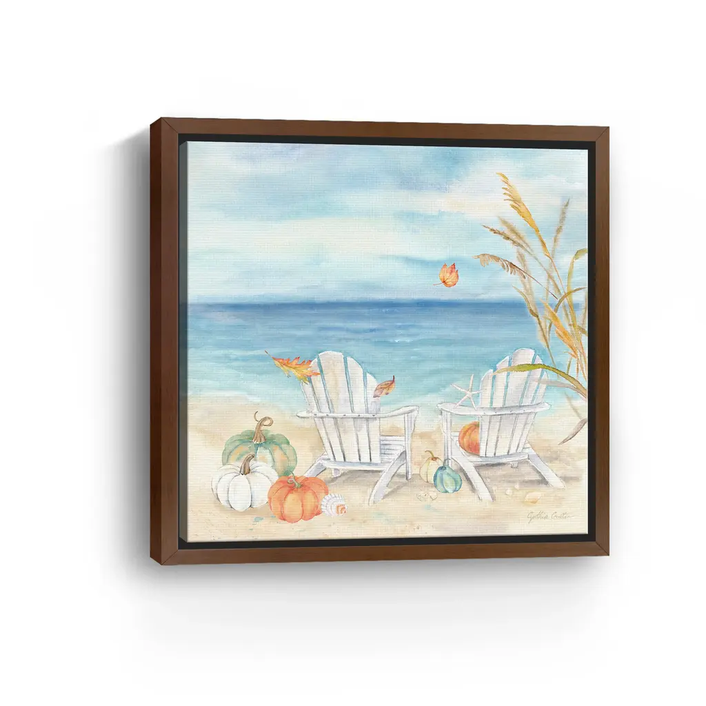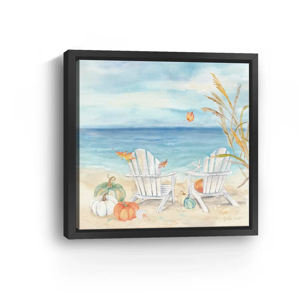 Infuse your space with seaside serenity using coastal fall canvas art that blends muted ocean hues with gentle signs of autumn—featuring vibrant pumpkins, cool tides, and soft sunlight. Our Gallery Wrap Canvas Prints are proudly assembled with high quality materials in California, USA. Each piece is printed on a thick, archival grade canvas using Giclee technology. It is then hand-stretched by our experienced artisans over solid wood bars, which will not warp over time. The final product is a piece personally crafted for you to confidently display on your wall. Care and Assembly: Ensure that the location of your piece has little to no exposure to heat, sunlight, and moisture. Wipe clean, only if needed. Each piece includes a sawtooth hanger to hang on your wall horizontally.