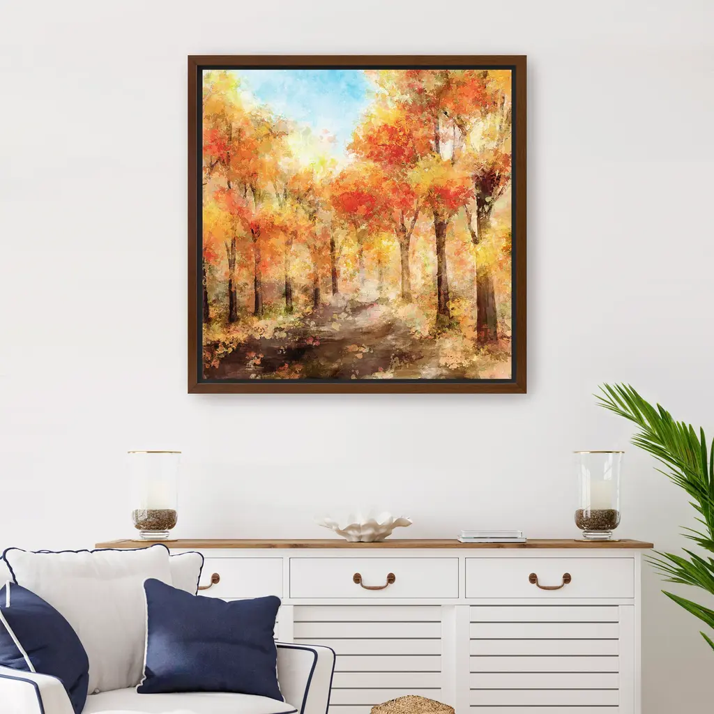 Bring the beauty of autumn indoors with this landscape fall canvas art print that captures the season’s serene charm. The rich hues and tranquil scenery evoke cozy walks through nature, making it a captivating focal point for seasonal décor. Perfect for lovers of fall landscapes and rustic wall art inspiration. Our Gallery Wrap Canvas Prints are proudly assembled with high quality materials in California, USA. Each piece is printed on a thick, archival grade canvas using Giclee technology. It is then hand-stretched by our experienced artisans over solid wood bars, which will not warp over time. The final product is a piece personally crafted for you to confidently display on your wall. Care and Assembly: Ensure that the location of your piece has little to no exposure to heat, sunlight, and moisture. Wipe clean, only if needed. Each piece includes a sawtooth hanger to hang on your wall horizontally.