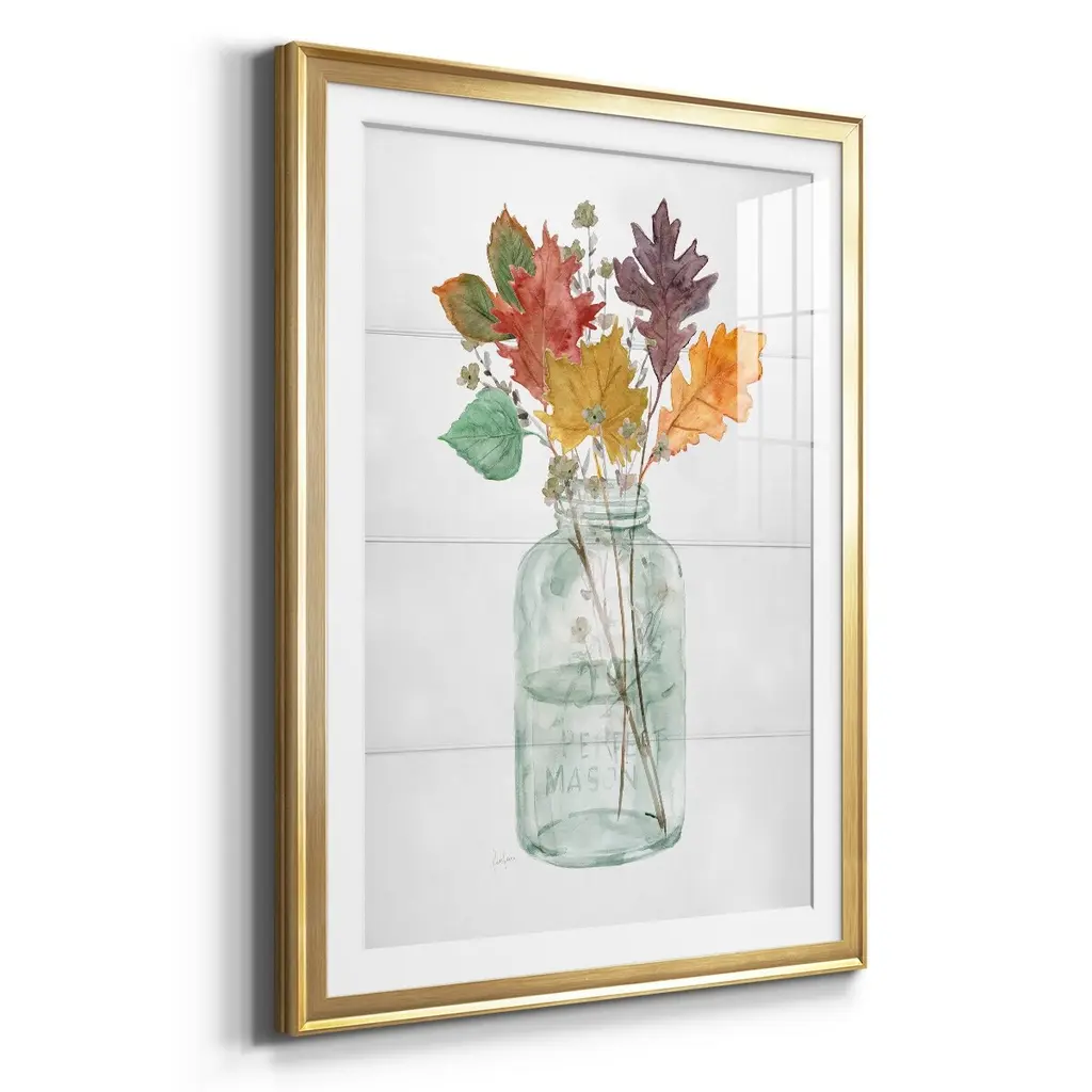 Harvest Home Leaves II Premium Framed Print - Ready to Hang A Premium Framed Print created to last. Framed in distressed wood and available in an array of sizes and colors Featuring a beveled a solid wood stretcher bar, each piece comes ready to hand 4 SIZES AVAILABLE 30.5''X42.5'' - Overall Size 26.5'X36.5'' - Overall Size 22.5''x30.5'' - Overall Size 18.5''x24.5'' - Overall Size Each piece is made to order. Each piece comes with hanging hardware. Made in the USA Ready to Hang Giclee Paper Print Acrylic Glass Beveled Matt Board