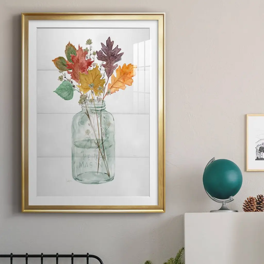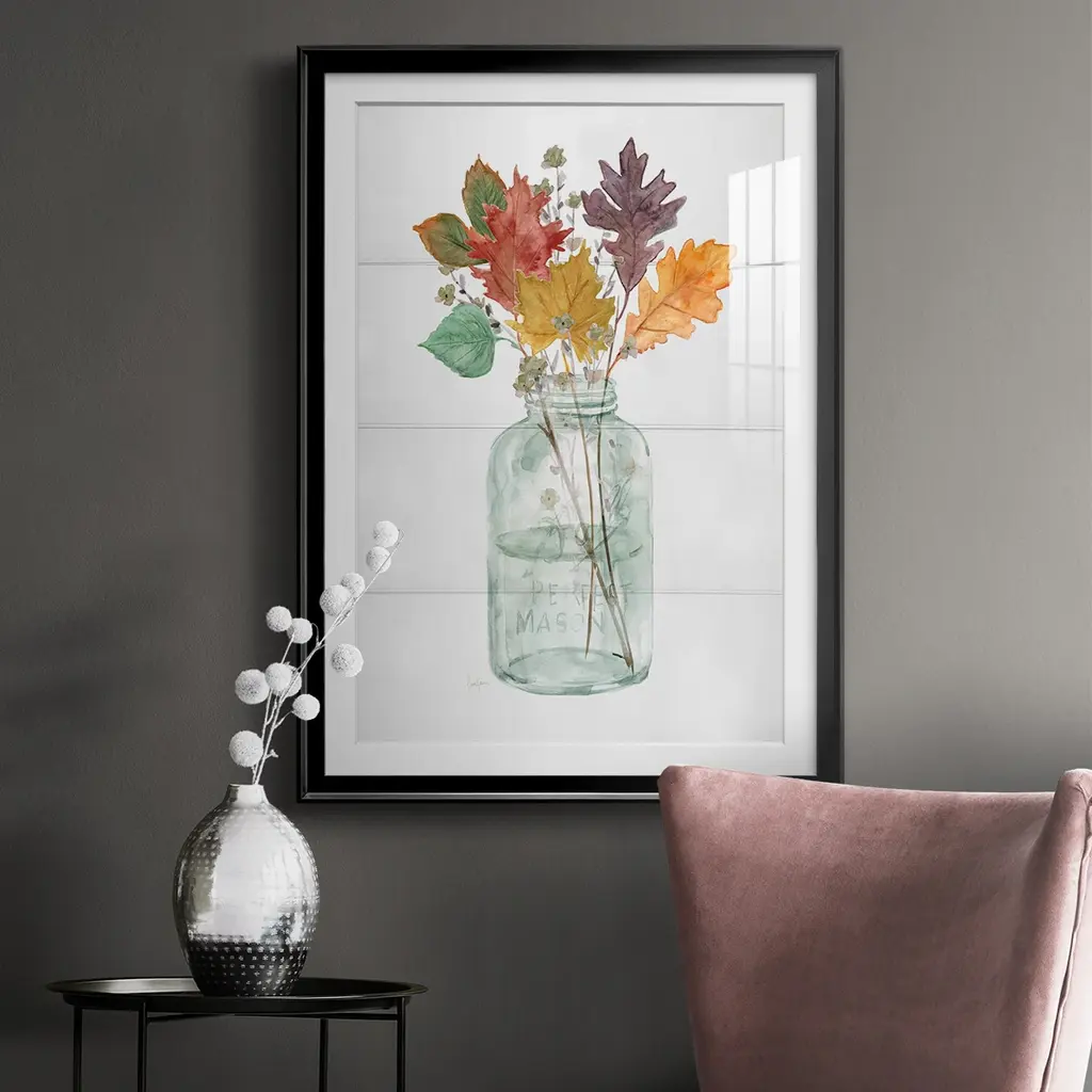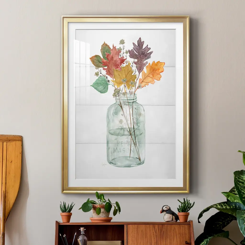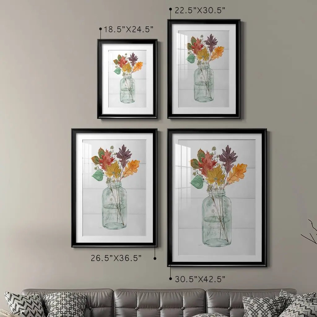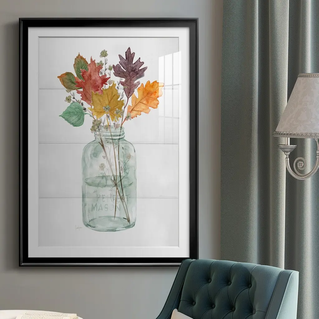 Harvest Home Leaves II Premium Framed Print - Ready to Hang A Premium Framed Print created to last. Framed in distressed wood and available in an array of sizes and colors Featuring a beveled a solid wood stretcher bar, each piece comes ready to hand 4 SIZES AVAILABLE 30.5''X42.5'' - Overall Size 26.5'X36.5'' - Overall Size 22.5''x30.5'' - Overall Size 18.5''x24.5'' - Overall Size Each piece is made to order. Each piece comes with hanging hardware. Made in the USA Ready to Hang Giclee Paper Print Acrylic Glass Beveled Matt Board