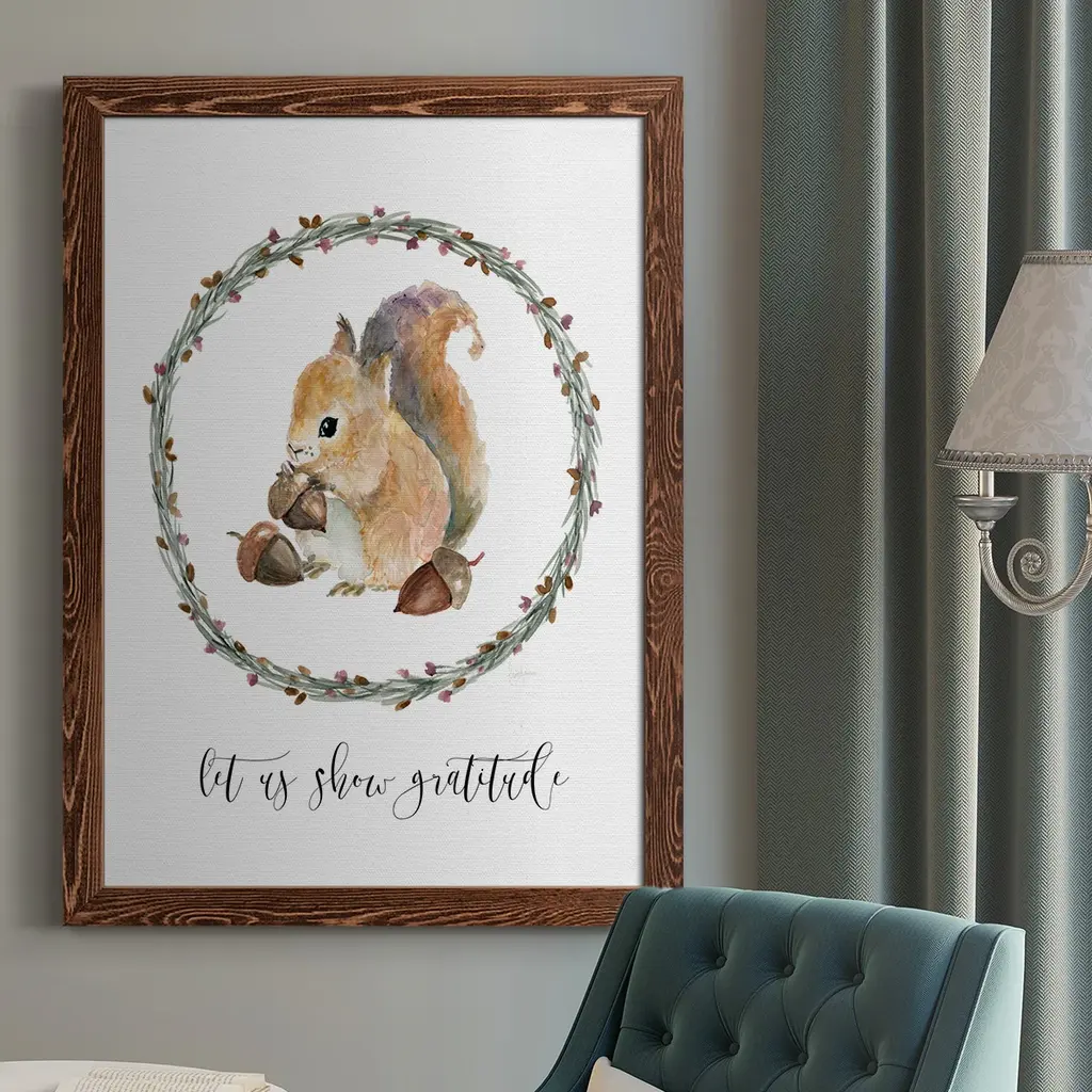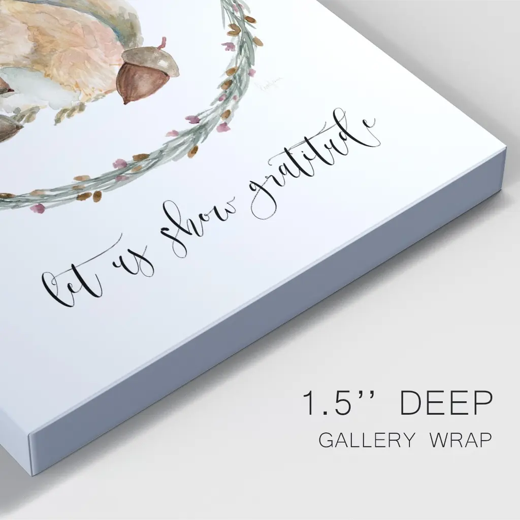 Harvest Home Squirrel Premium Gallery Wrapped Canvas - Ready to Hang A premium hand stretched gallery wrapped canvas print created to last. Featuring a beveled a solid wood stretcher bar, each piece comes ready to hand 6 SIZES AVAILABLE 8''X12'' - Overall Size 12''X18'' - Overall Size 18''X27'' - Overall Size 24''x36'' - Overall Size 32''x48'' - Overall Size 40''x60'' - Overall Size Each piece is made to order. Built to Last Each piece comes ready to hang Solid wood stretcher Fade and Water resistant Made domestically