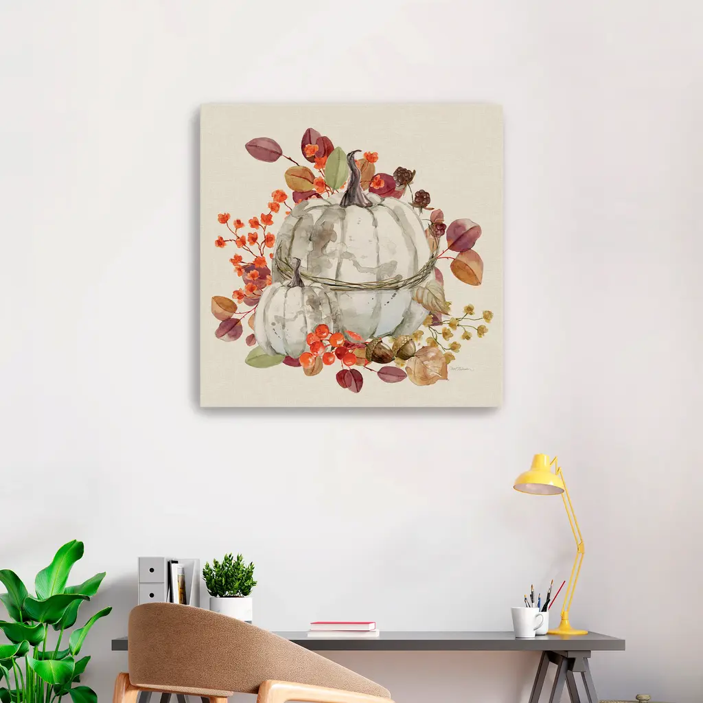 Transform any space into a fall retreat with a pumpkin canvas print that blends harvest motifs and seasonal warmth. A charming visual reminder of cozy gatherings and crisp autumn days. Our Gallery Wrap Canvas Prints are proudly assembled with high quality materials in California, USA. Each piece is printed on a thick, archival grade canvas using Giclee technology. It is then hand-stretched by our experienced artisans over solid wood bars, which will not warp over time. The final product is a piece personally crafted for you to confidently display on your wall. Care and Assembly: Ensure that the location of your piece has little to no exposure to heat, sunlight, and moisture. Wipe clean, only if needed. Each piece includes a sawtooth hanger to hang on your wall horizontally.