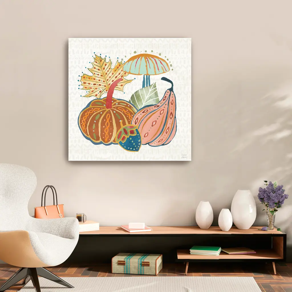 Transform any space into a fall retreat with a pumpkin canvas print that blends harvest motifs and seasonal warmth. A charming visual reminder of cozy gatherings and crisp autumn days. Our Gallery Wrap Canvas Prints are proudly assembled with high quality materials in California, USA. Each piece is printed on a thick, archival grade canvas using Giclee technology. It is then hand-stretched by our experienced artisans over solid wood bars, which will not warp over time. The final product is a piece personally crafted for you to confidently display on your wall. Care and Assembly: Ensure that the location of your piece has little to no exposure to heat, sunlight, and moisture. Wipe clean, only if needed. Each piece includes a sawtooth hanger to hang on your wall horizontally.