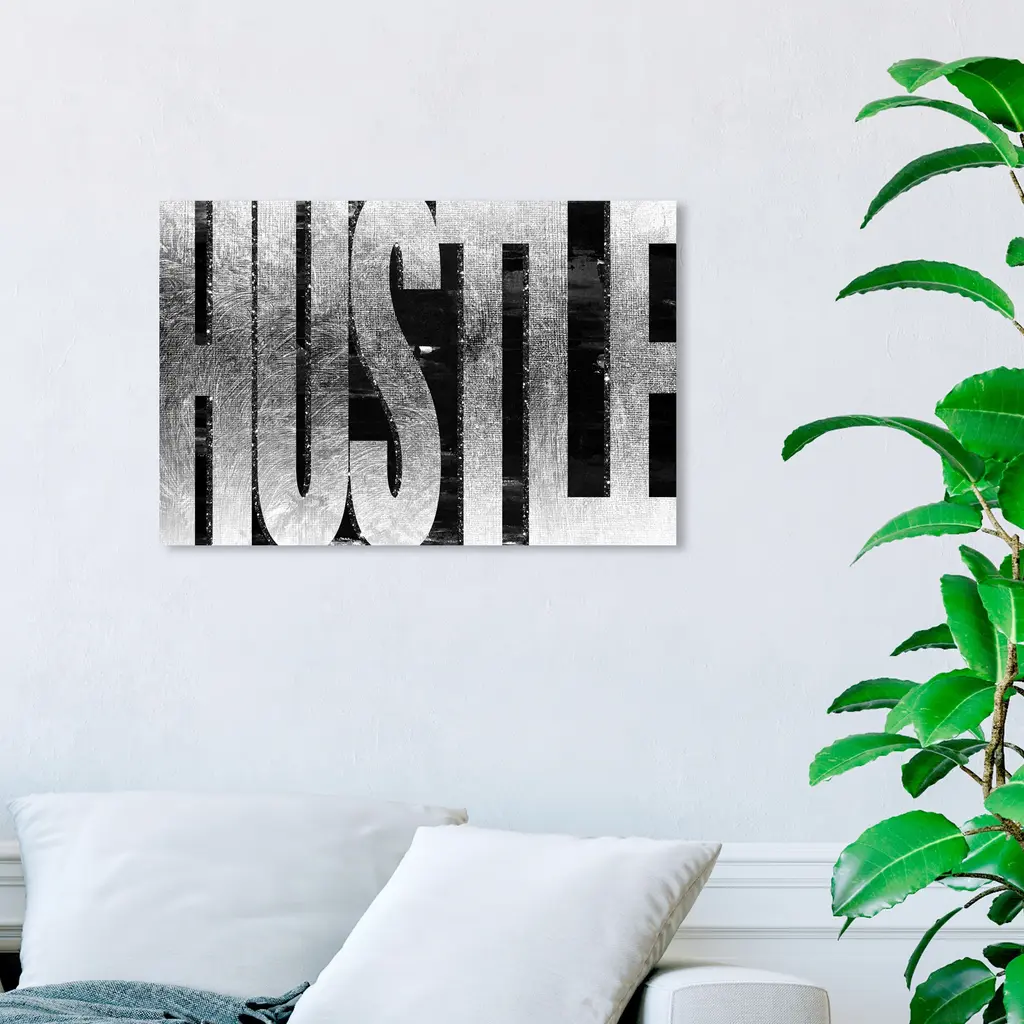 Hatcher And Ethan Prints 'Hustle Cave' Typography And Quotes Gray Wall Art Canvas Print - 36 X 24