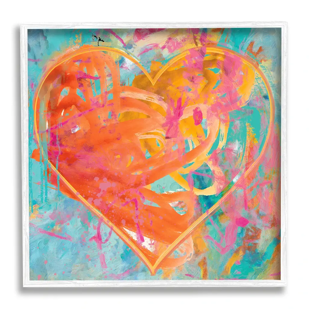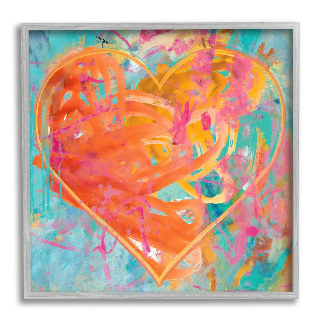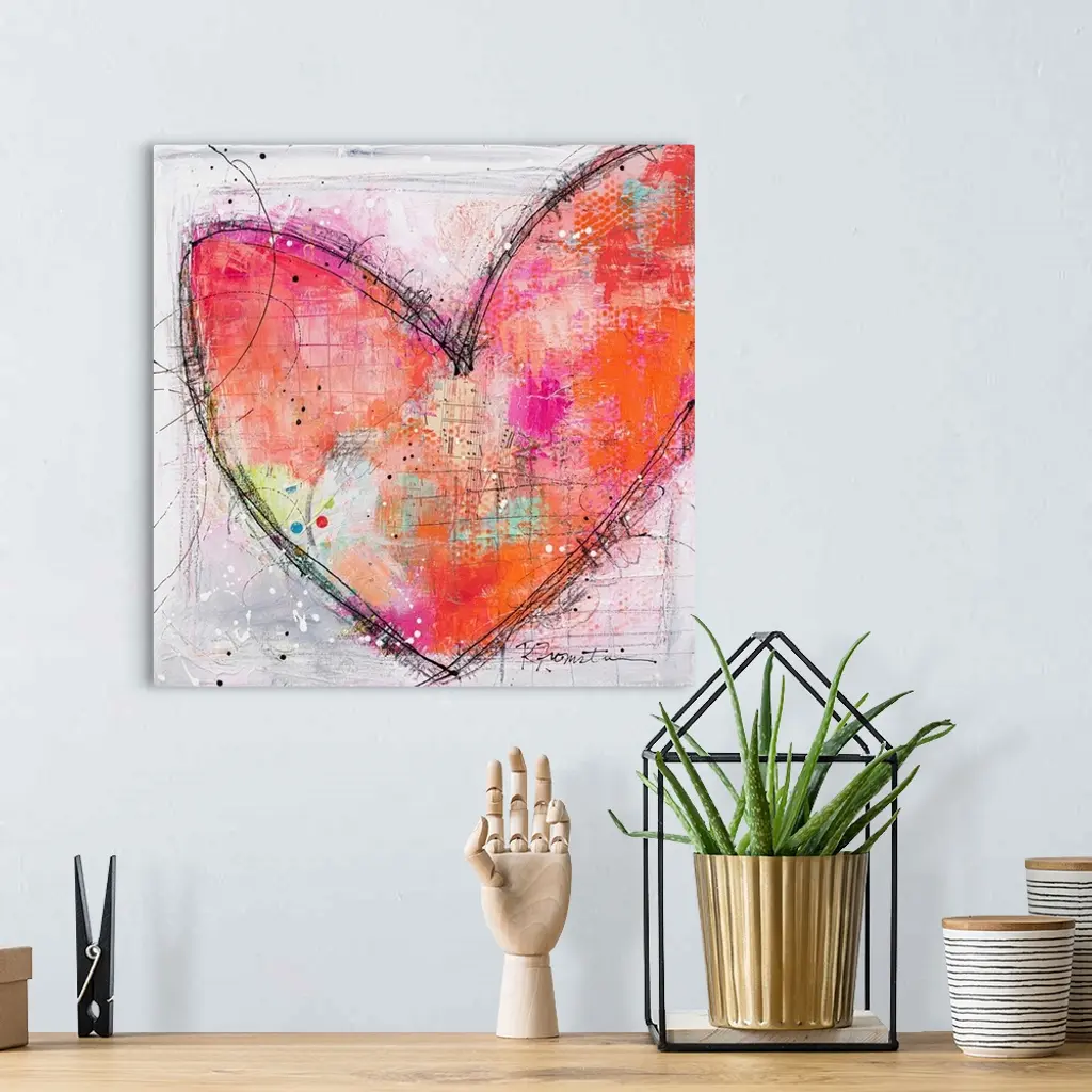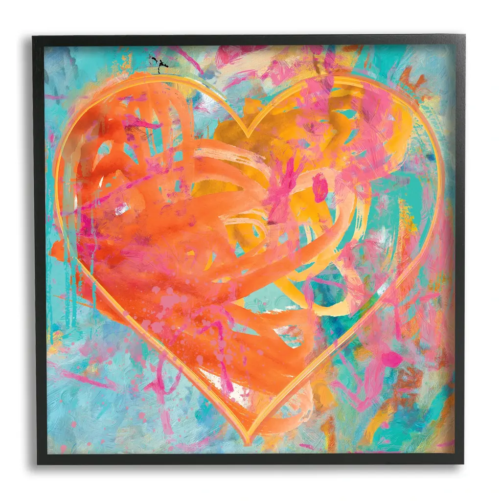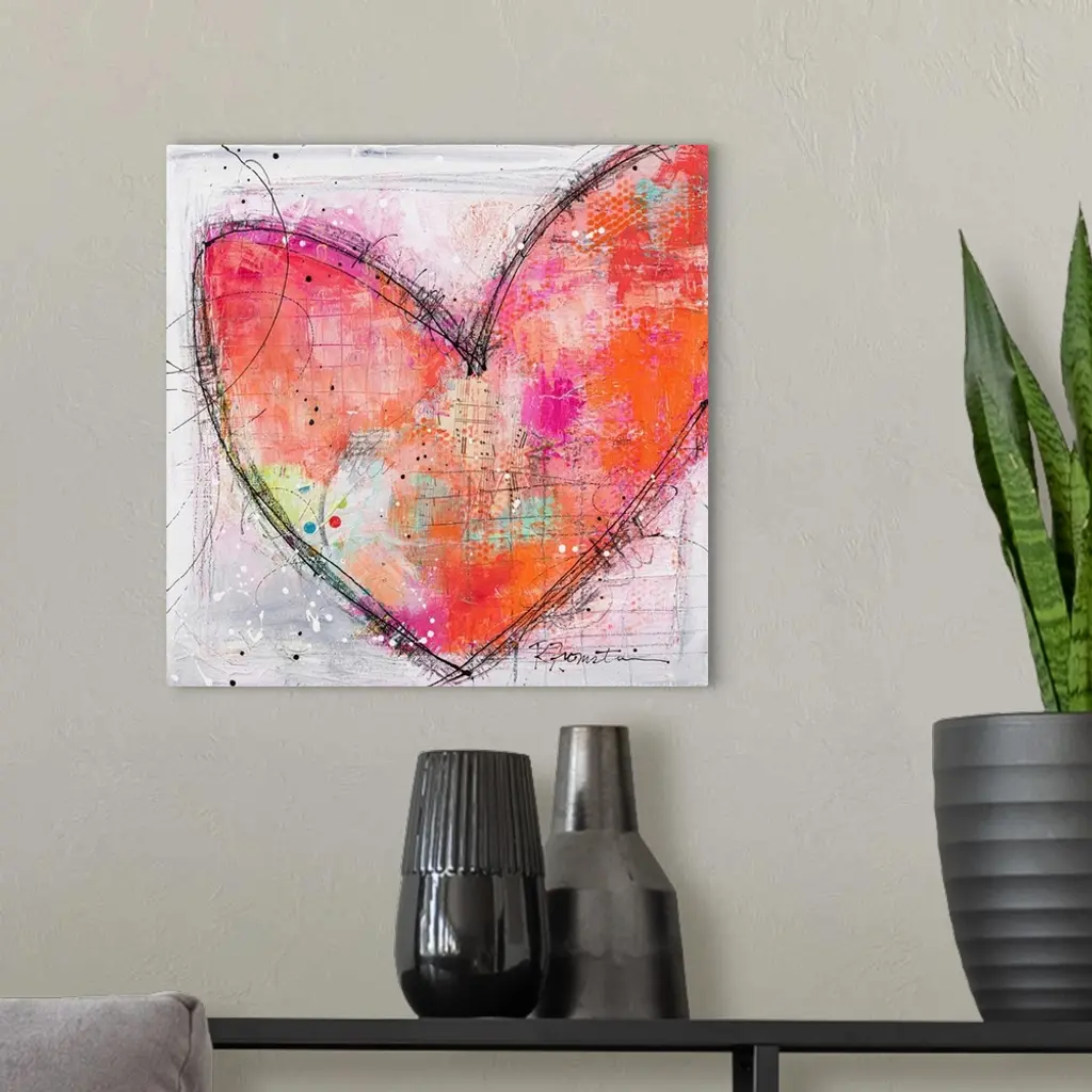 A sweet sketchy image of a pink and orange heart outlined in black sketch lines. This is a warm and inviting contemporary piece