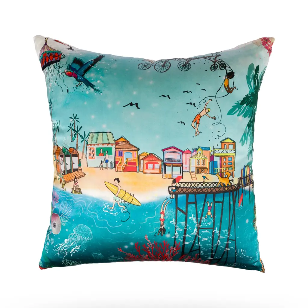 Inspired by the tropical beauty of Hawaii’s beaches, this design captures the essence of golden sands, turquoise waves, and swaying palm trees. Hawaii’s coastlines are known for their vibrant sunsets, volcanic landscapes, and the serene rhythm of island life. This artwork reflects the warmth, color, and natural harmony that make Hawaii’s beaches truly unforgettable.The paintings consist of special designs drawn by painters with a passion for art and travel.Color your Home with Art with Un Poco!· Our patterns are hand drawn and digitally printed.· 100% silk scarf with 100% wooden frame.· The edges of our scarves are sewn by hand.
