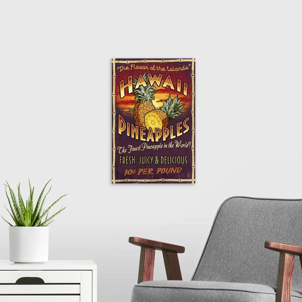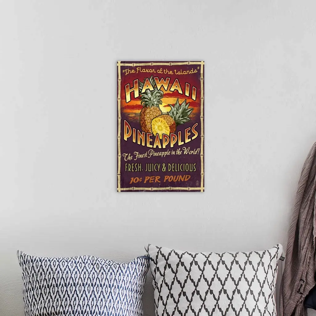 Hawaiian Pineapple Vintage Sign: Retro Travel Poster wall art for home and office decor. Discover canvas art prints, photos, mural, big canvas art and framed wall art in GreatBigCanvas.com's varied collections.