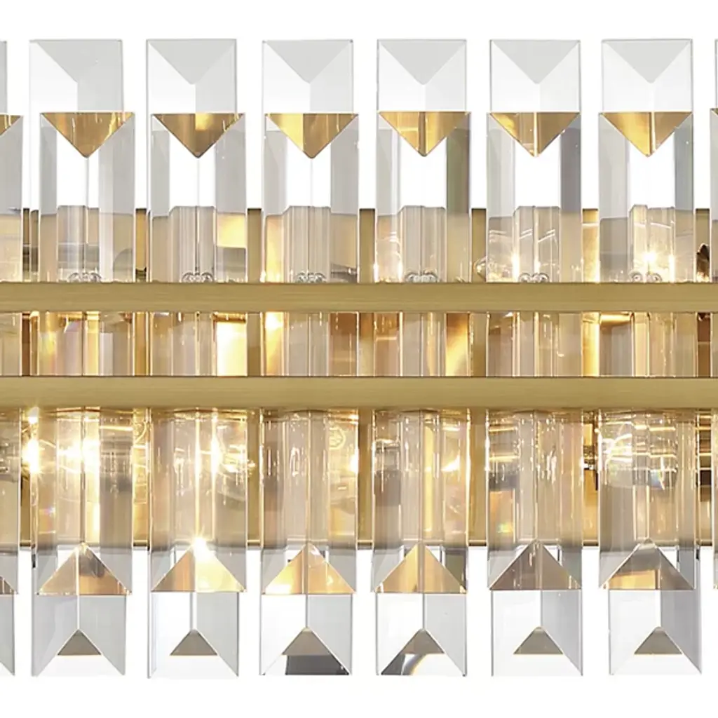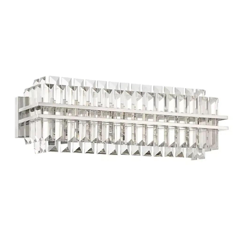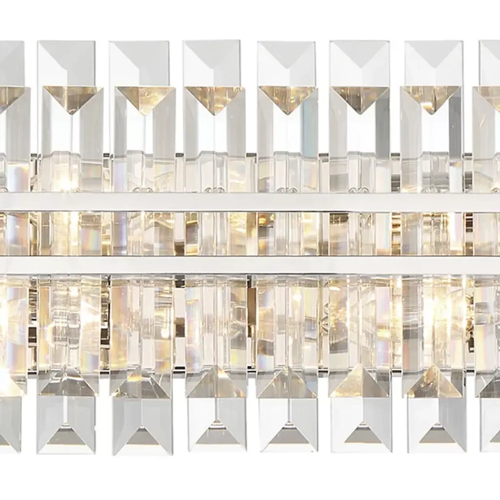 The Hayes Vanity Light from Crystorama brings Art Deco-inspired elegance to bathroom spaces. With a linear design, this fixture features multiple tiers of faceted crystal prisms arranged in a frameless look. Made with steel and glass, this vanity luminaire is defined by its tonal, textural, monochromatic, and minimal aesthetic. A harmonious balance between vivacity and structure, the Hayes Vanity Light casts a brilliant, multifaceted glow that holds the ability to elevate any bathroom.