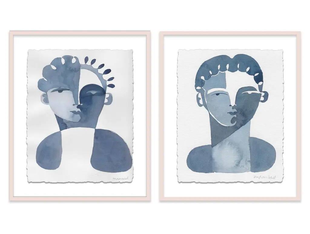 Seen first at One Kings Lane: Defined by its cool coloration and clever use of negative space, this diptych from Hayley Mitchell is rendered on high-quality watercolor paper, set under Plexiglas, and beautifully framed. Arrives ready to hang.Inspired by powerful woman from all walks of life, Hayley Mitchell portrays their strength and beauty with unique, bold brushstrokes, cubist faces, and nude figures. A native Texan, Hayley currently resides in Austin with her four small children.