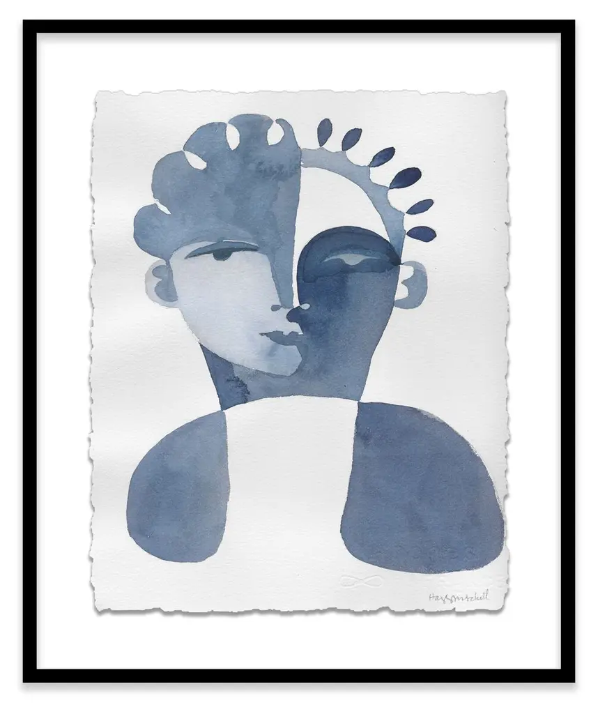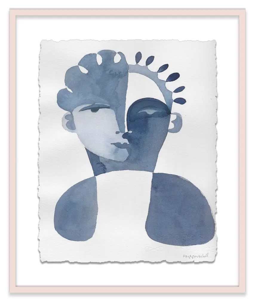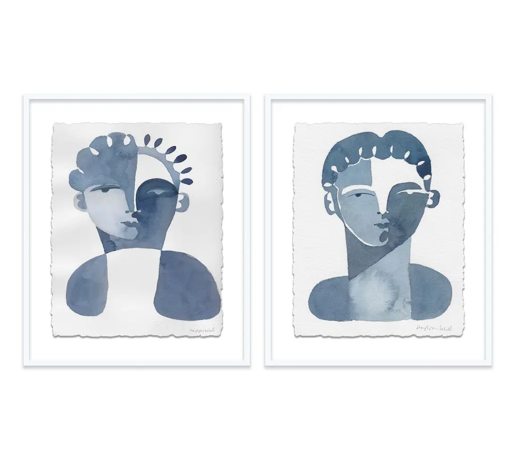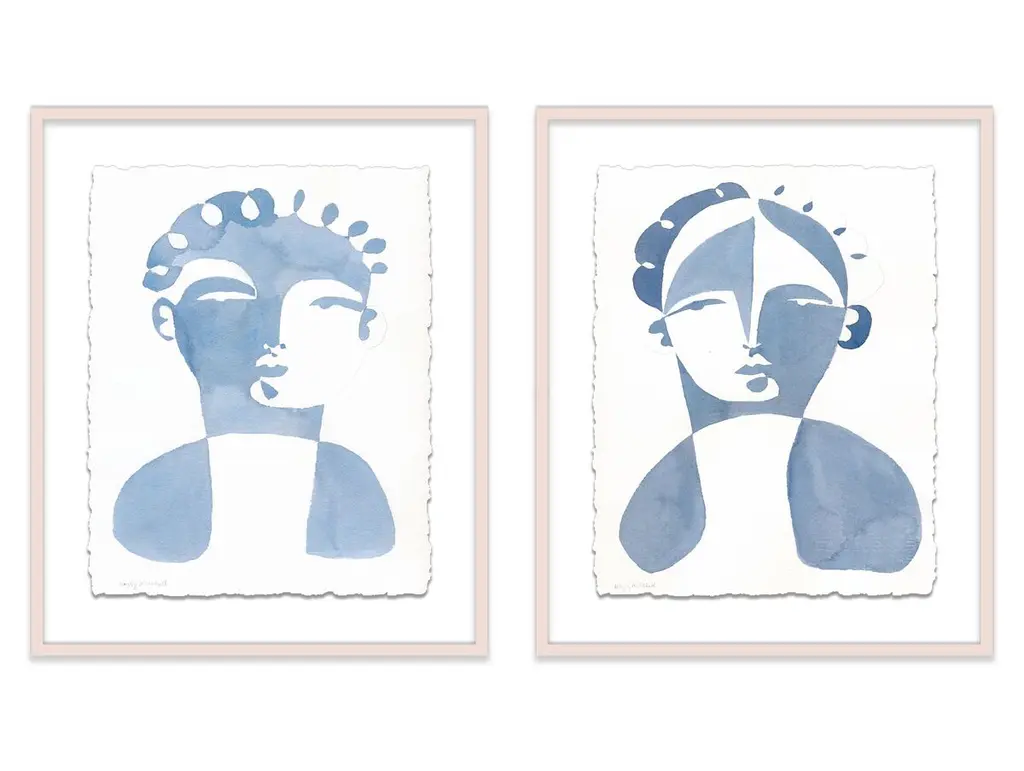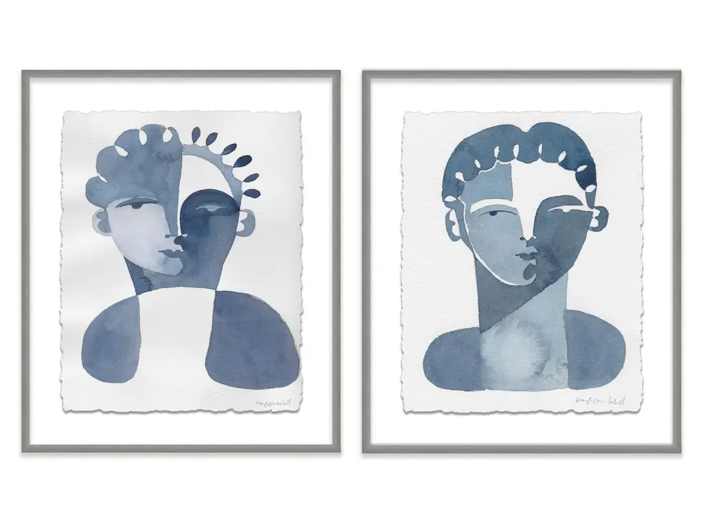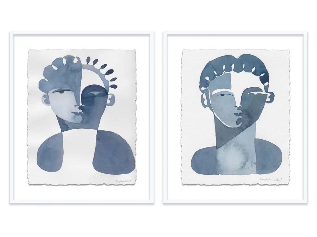 Seen first at One Kings Lane: Defined by its cool coloration and clever use of negative space, this diptych from Hayley Mitchell is rendered on high-quality watercolor paper, set under Plexiglas, and beautifully framed. Arrives ready to hang.Inspired by powerful woman from all walks of life, Hayley Mitchell portrays their strength and beauty with unique, bold brushstrokes, cubist faces, and nude figures. A native Texan, Hayley currently resides in Austin with her four small children.