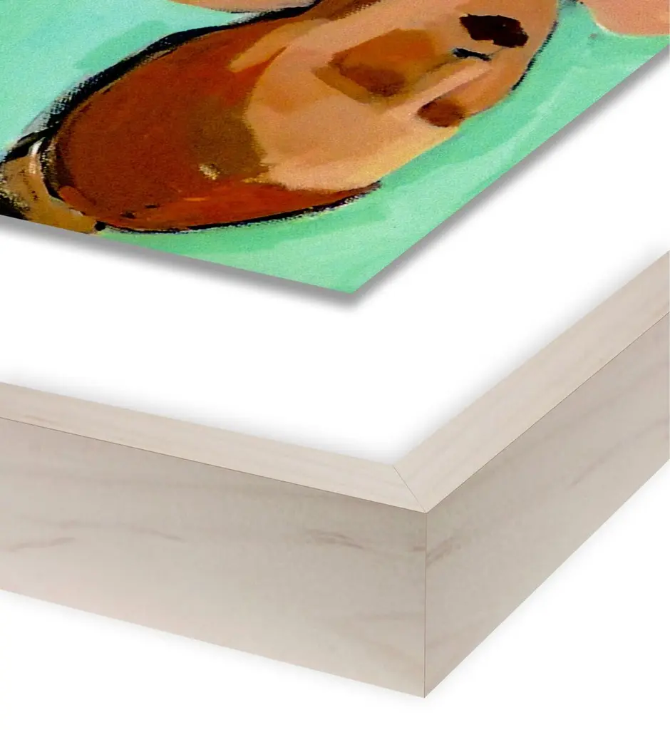 This faithful reproduction of a Hayley Mitchel painting depicts four perched bathers and a contrasting aqua field. Matted and set under Plexiglas in a natural pine frame, this piece arrives ready to hang.Inspired by powerful woman from all walks of life, Hayley Mitchell portrays their strength and beauty with unique, bold brush strokes, cubist faces, and nude figures. A native Texan, Hayley currently resides in Austin with her four small children.