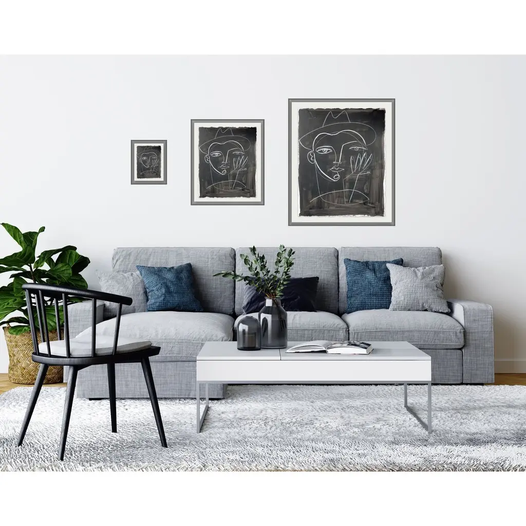 Seen first at One Kings Lane: This portrait from Hayley Mitchell enlivens any wall with its bold composition and high-contrast palette. Printed on fine-art paper, matted, and displayed in a wood frame, this piece arrives ready to hang.Inspired by powerful woman from all walks of life, Hayley Mitchell portrays their strength and beauty with unique, bold brushstrokes, cubist faces, and nude figures. A native Texan, Hayley currently resides in Austin with her four small children.