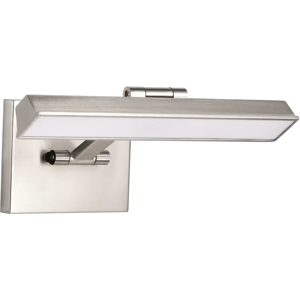 Transform your most treasured artwork and cherished photographs into captivating focal points with the Hazel 62-2321 LED picture light, a masterpiece in design where every light tells a story. This LED traditional picture light offers a perfect balance of form and function, with an adjustable head and soft, refined edge. With the CCT Selectable switch, choose your optimal warmth from warm to cool, with flat, opaque acrylic lens diffusing the glow evenly. Finished in a luxurious brushed nickel for understated elegance, Hazel allows your art to shine brighter, and your memories to linger longer.