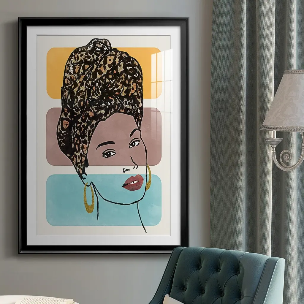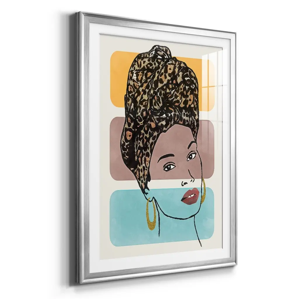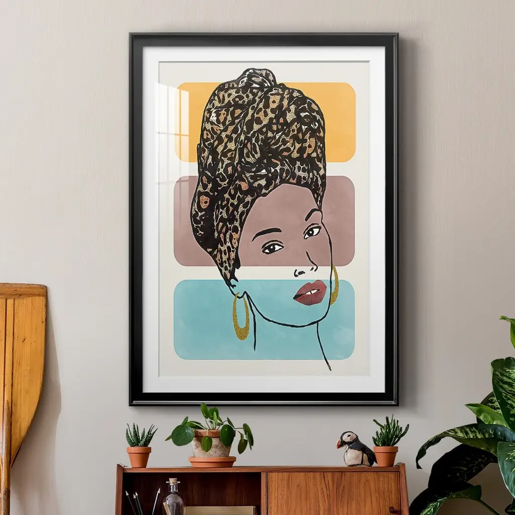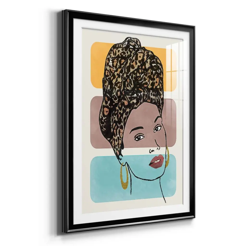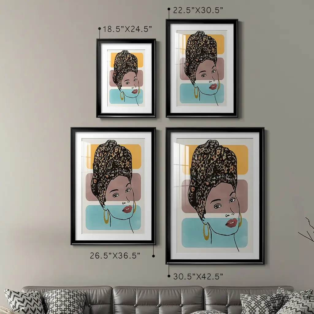 Head Wrap I Premium Framed Print - Ready to Hang A Premium Framed Print created to last. Framed in distressed wood and available in an array of sizes and colors Featuring a beveled a solid wood stretcher bar, each piece comes ready to hand 4 SIZES AVAILABLE 30.5''X42.5'' - Overall Size 26.5'X36.5'' - Overall Size 22.5''x30.5'' - Overall Size 18.5''x24.5'' - Overall Size Each piece is made to order. Each piece comes with hanging hardware. Made in the USA Ready to Hang Giclee Paper Print Acrylic Glass Beveled Matt Board