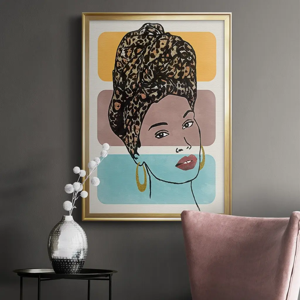 Head Wrap I Premium Framed Print - Ready to Hang A Premium Framed Print created to last. Framed in distressed wood and available in an array of sizes and colors Featuring a beveled a solid wood stretcher bar, each piece comes ready to hand 4 SIZES AVAILABLE 30.5''X42.5'' - Overall Size 26.5'X36.5'' - Overall Size 22.5''x30.5'' - Overall Size 18.5''x24.5'' - Overall Size Each piece is made to order. Each piece comes with hanging hardware. Made in the USA Ready to Hang